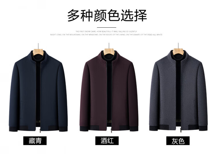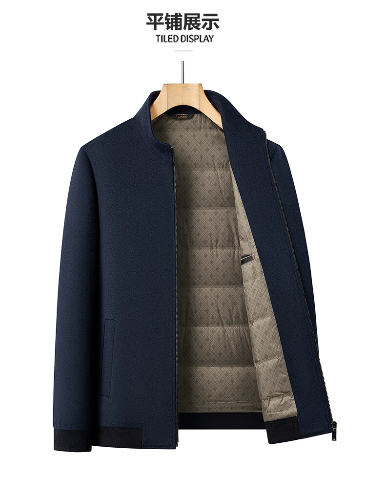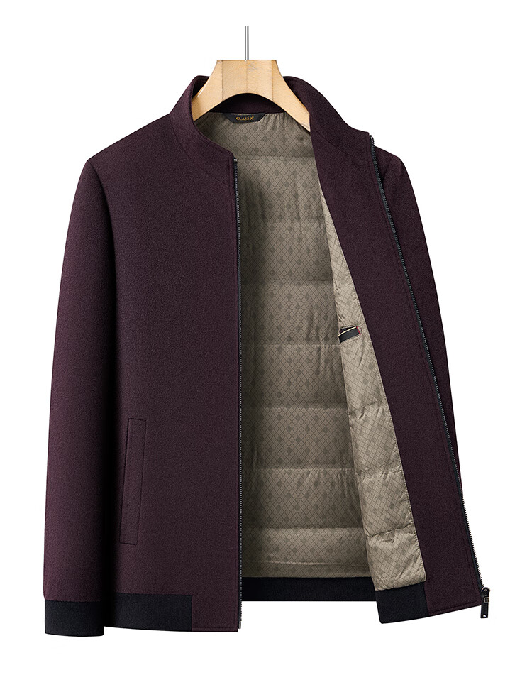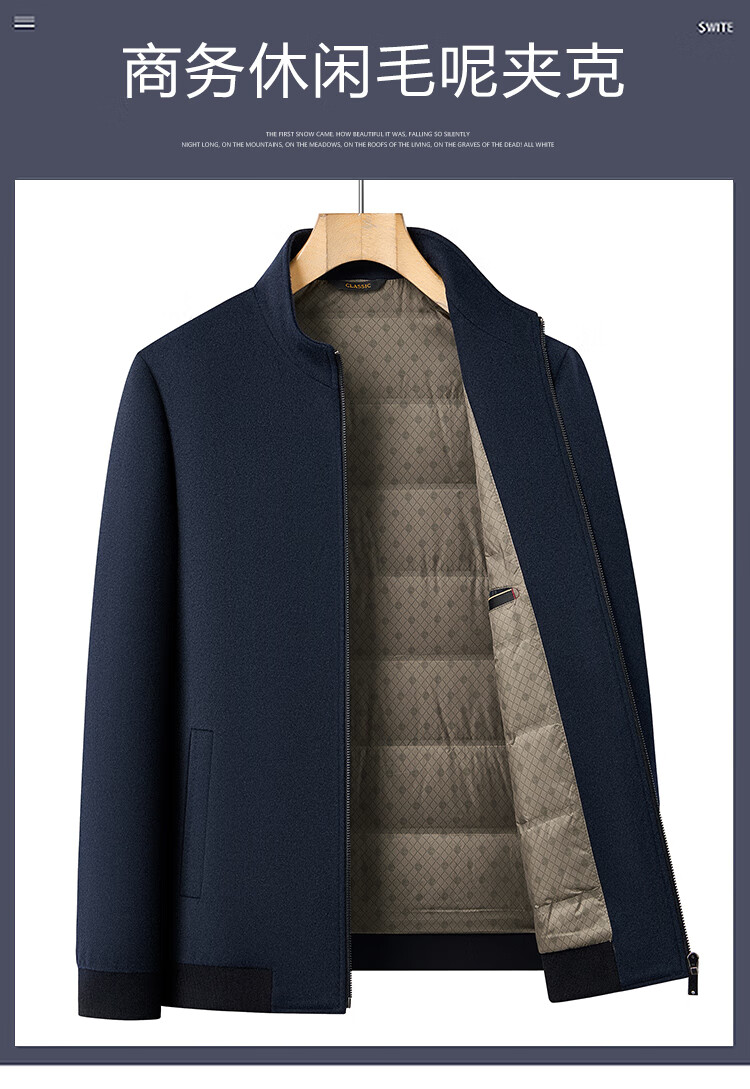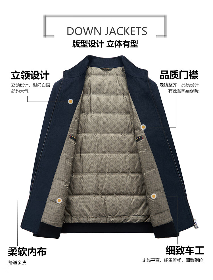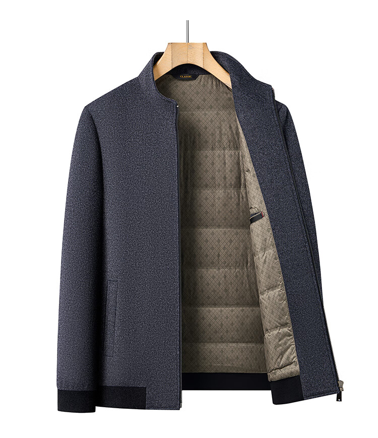 Hengyuanxiang pure wool woolen jacket men's middle-aged stand-up collar executive down liner dad autumn and winter clothing