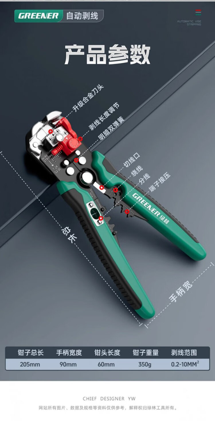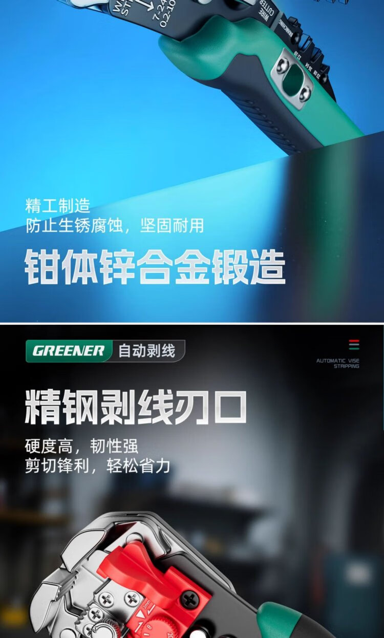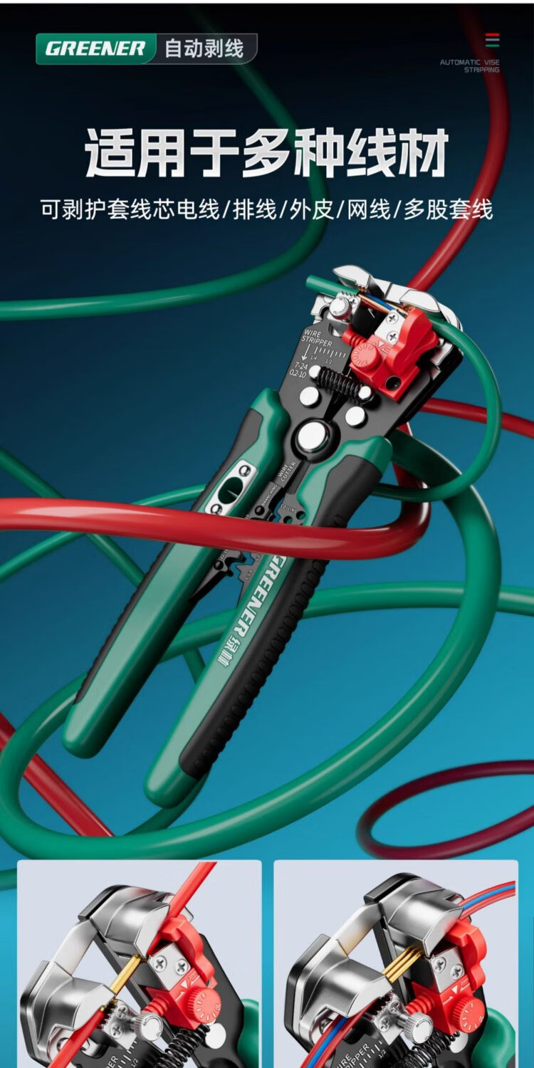 GREENER wire stripping pliers, new industrial-grade pliers for electricians, automatic wire stripper, multi-functional cable stripper
