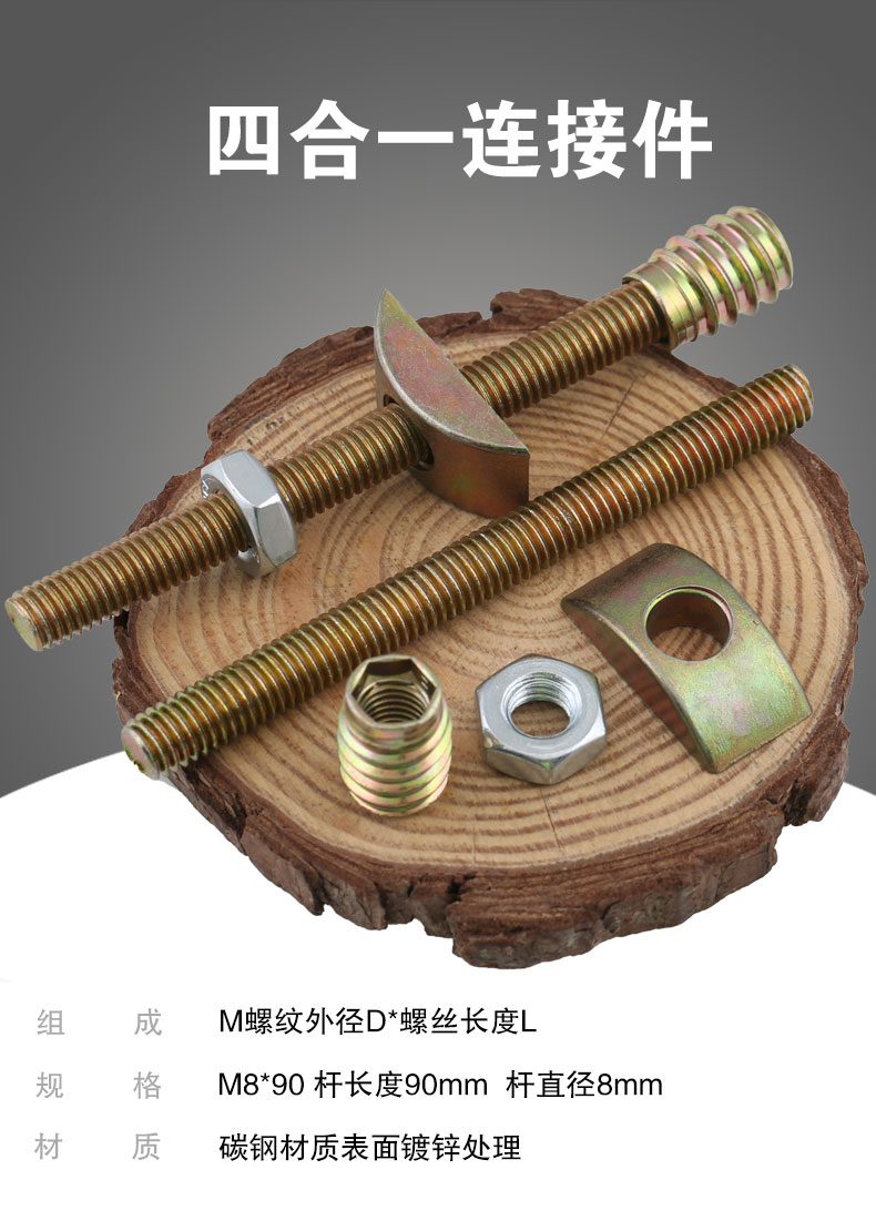 Kinway furniture hardware four-in-one connector M8 bed four-in-one assembly hammer nut screw eccentric wheel accessories dining table bedside desk screw half-moon nut
