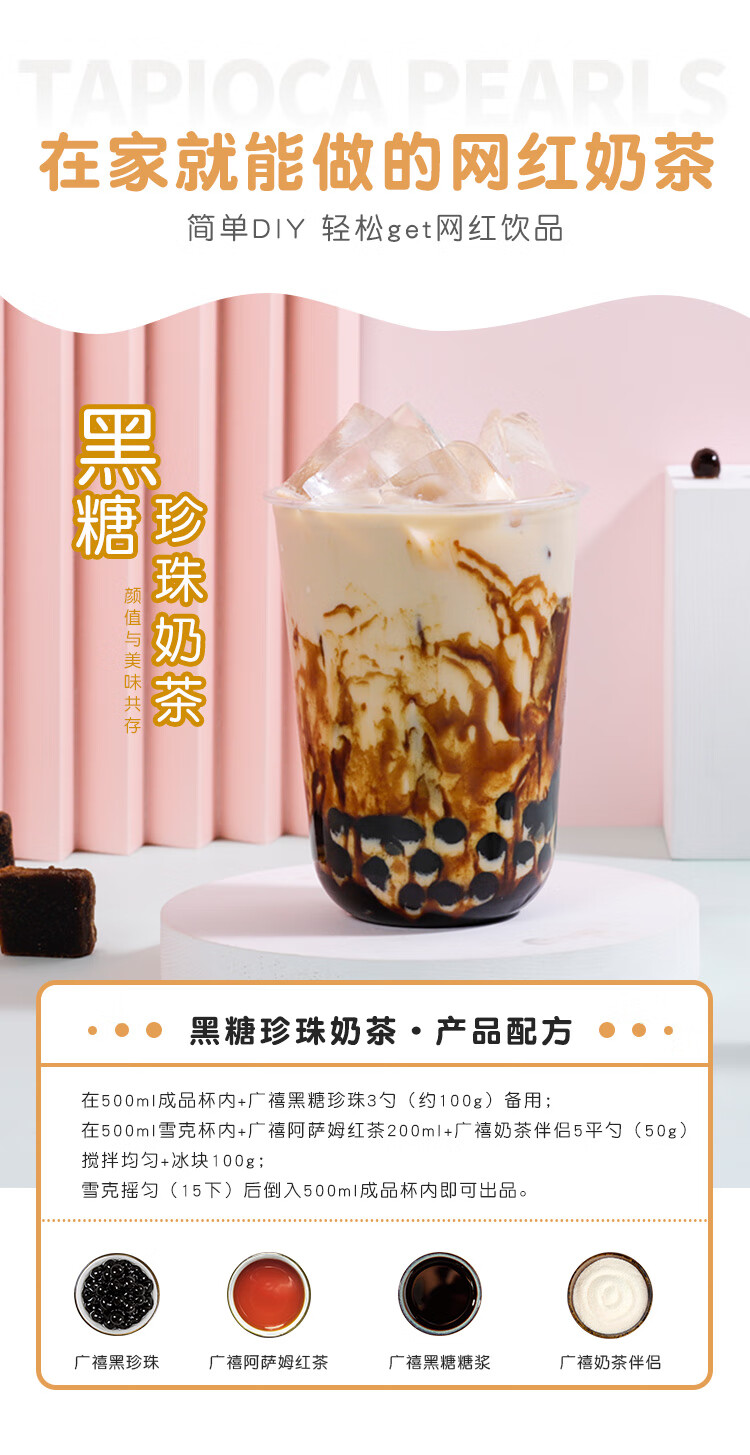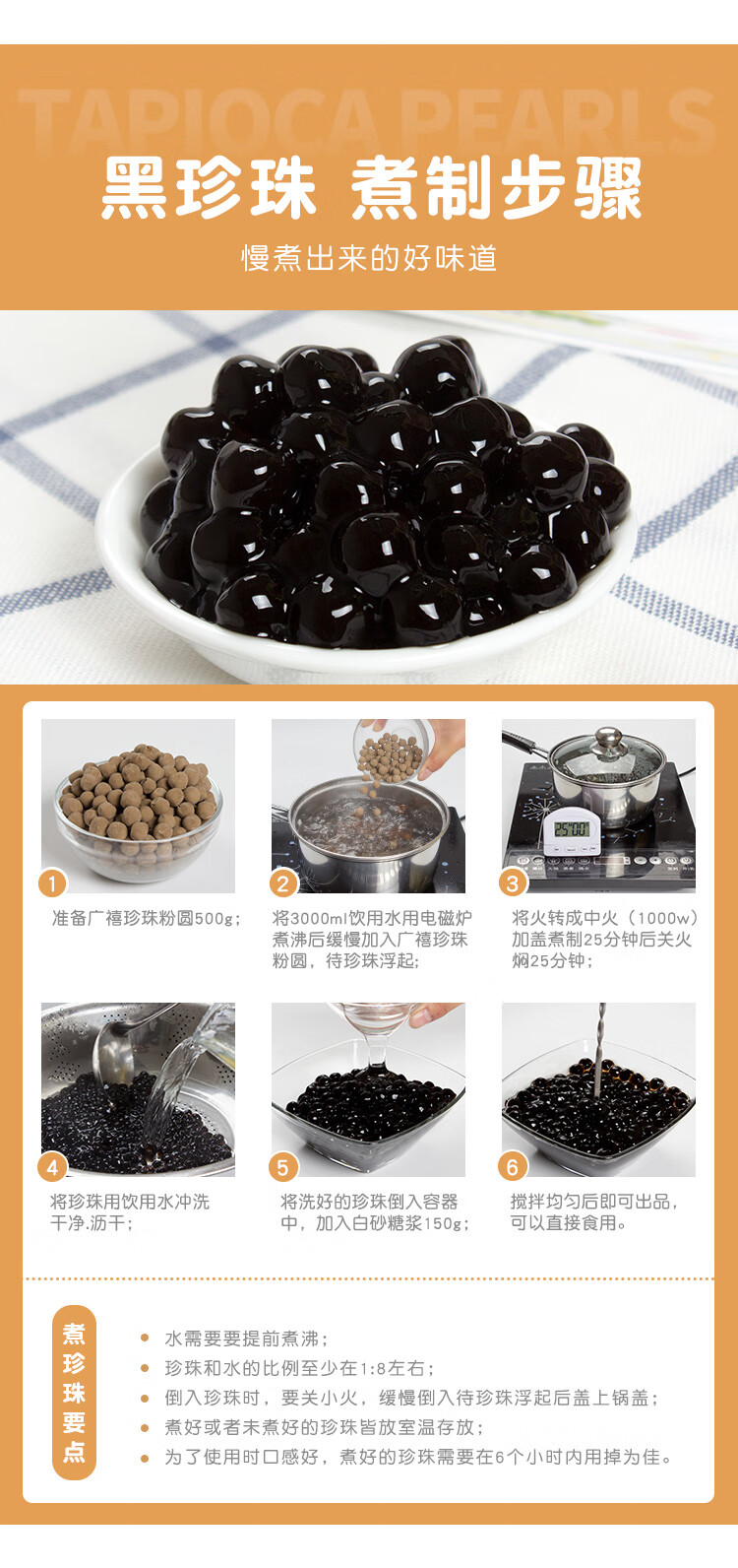 Guangxi Premium Regular Black Pearl Rice Balls 1kg Boba Brown Sugar Boiled Pearl Beans Pearl Milk Tea Shop Ingredients Special Ingredients