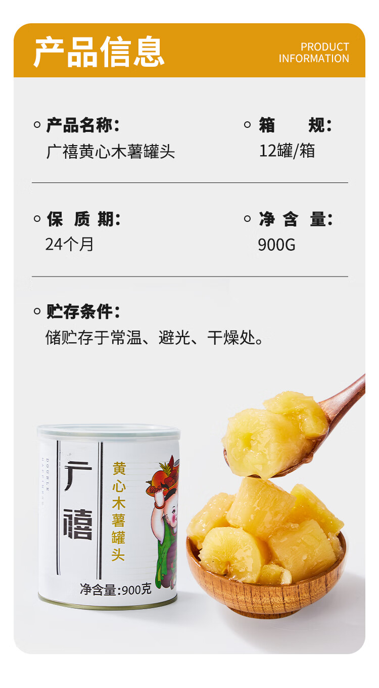 Guangxi Premium Yellow Heart Cassava Can 900g Soft Glutinous Sugar Water Cassava Soup Sweet Drink Ready-to-Eat Milk Tea Catering Commercial Ingredients