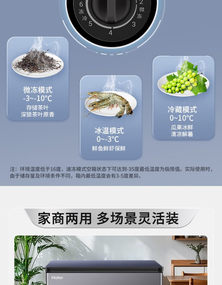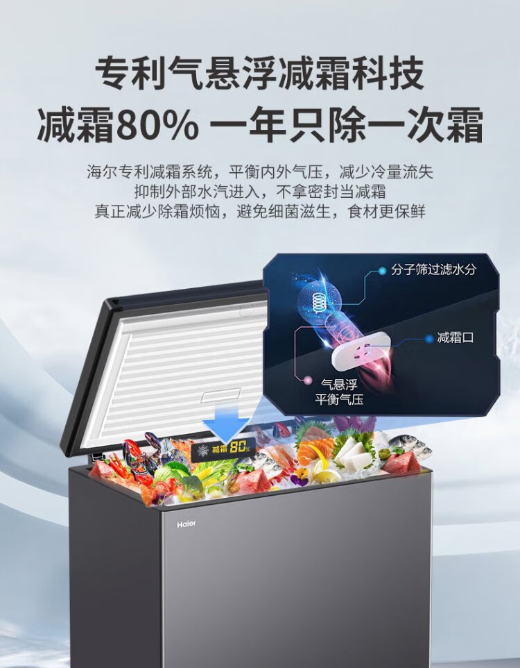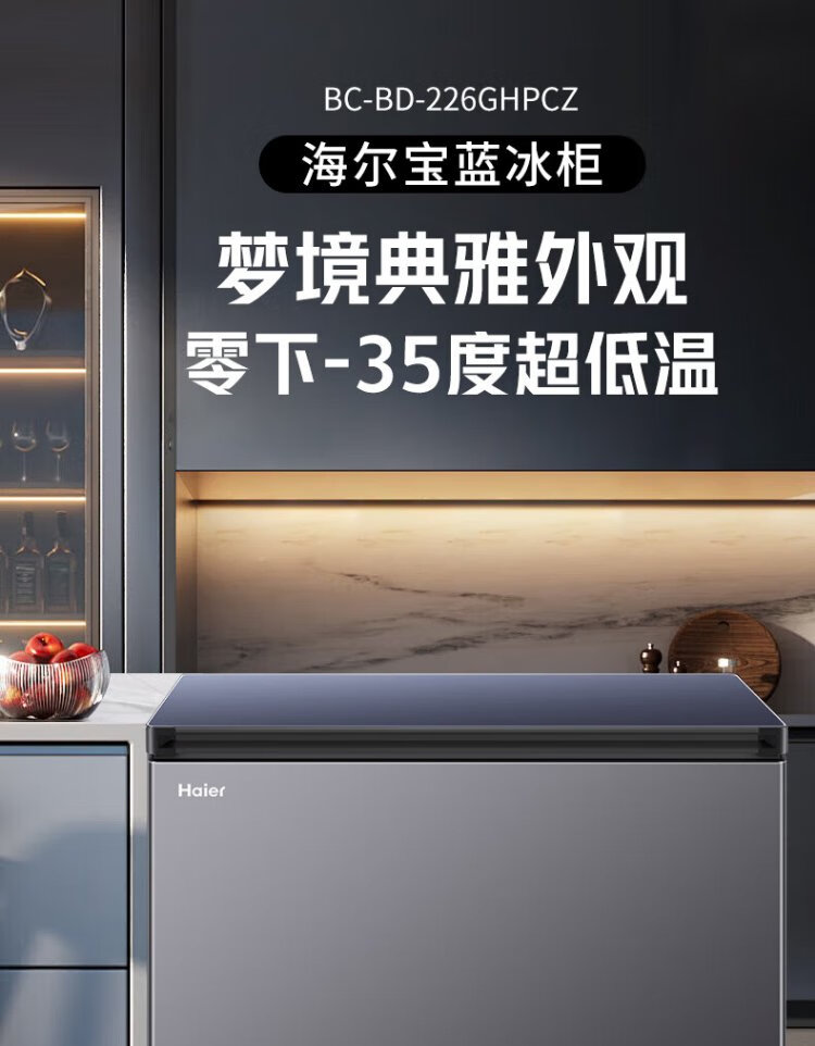 Haier Sapphire 226-liter single-temperature freezer household small large capacity -35 degrees ultra-low temperature no need for frequent defrosting freezing/refrigeration refrigerator BC/BD-226GHPCZ national subsidy