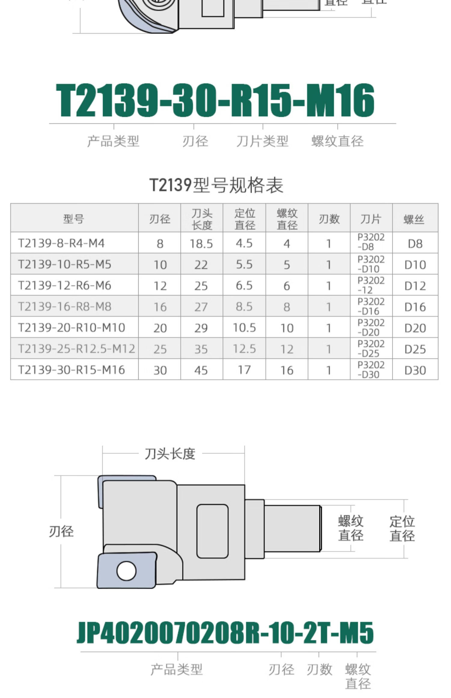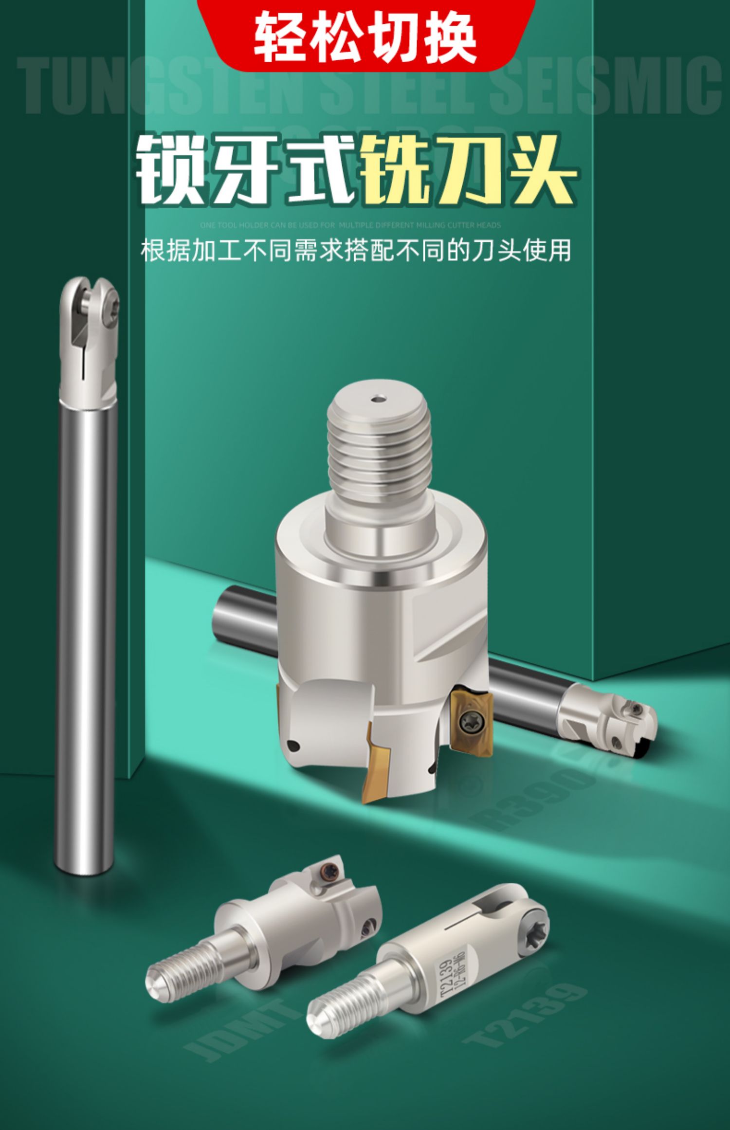 Locking tooth type milling cutter head shock-resistant tungsten steel cutter shank thread head face milling cutter head JD0702-10-2T-M5
