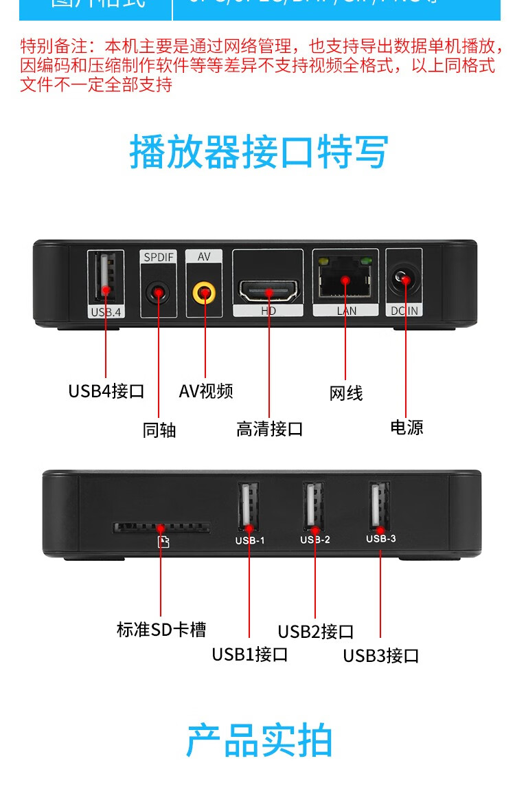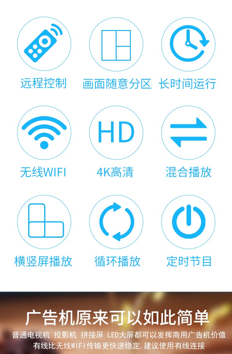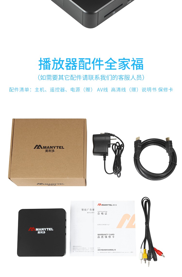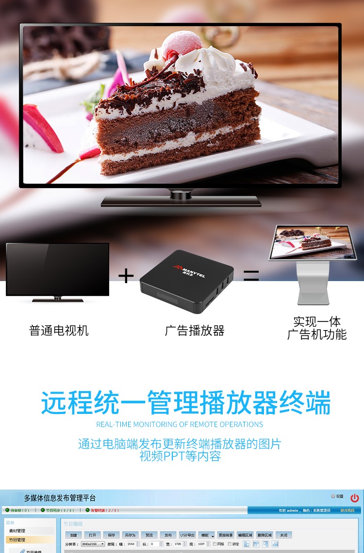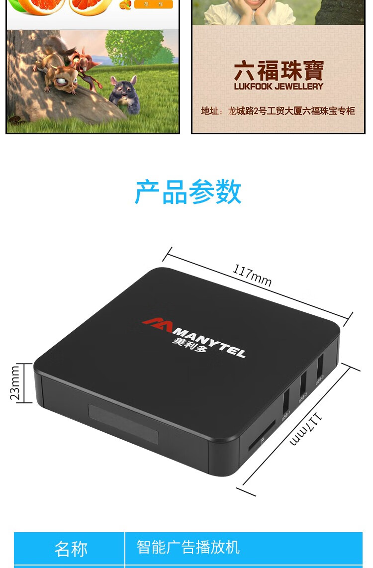 MANYTEL 4K advertising high-definition player multimedia information release box horizontal and vertical split screen cycle stand-alone playback remote network management advertising player black MP33PRO network management version