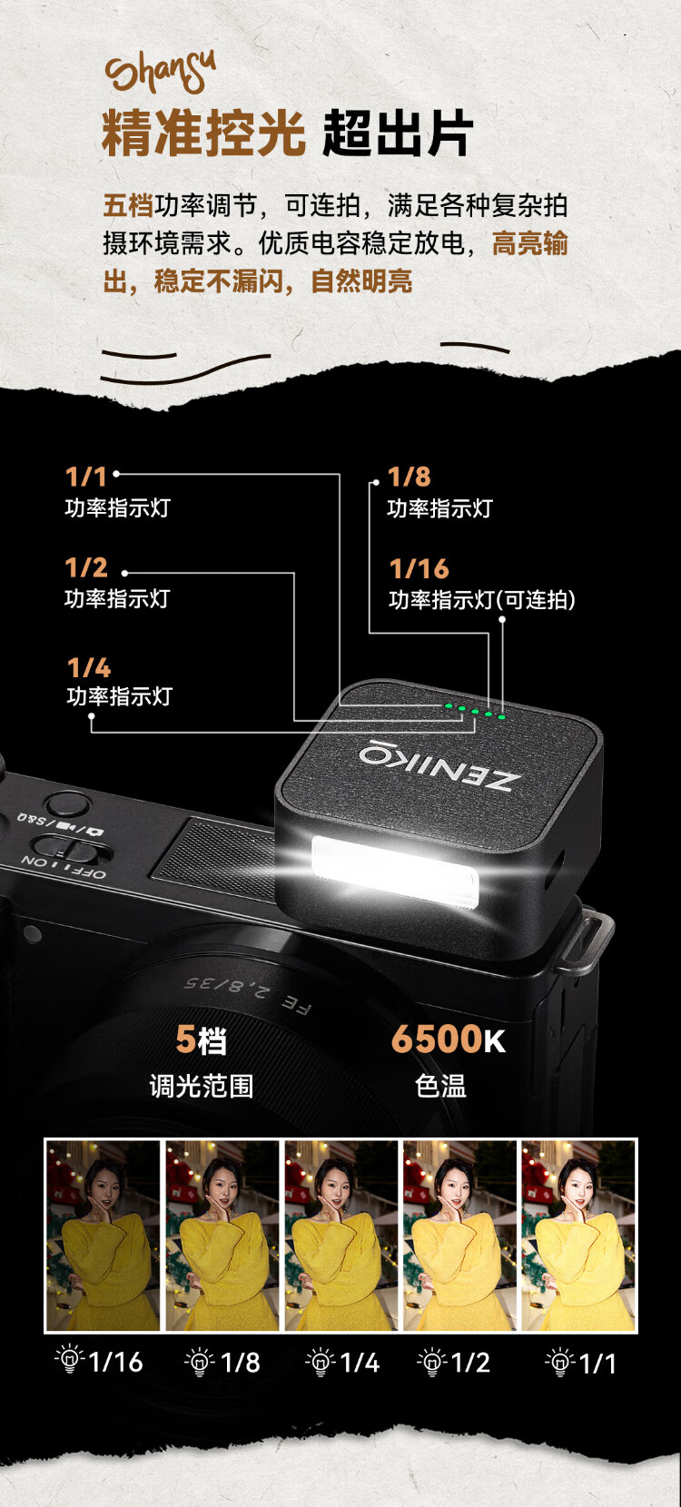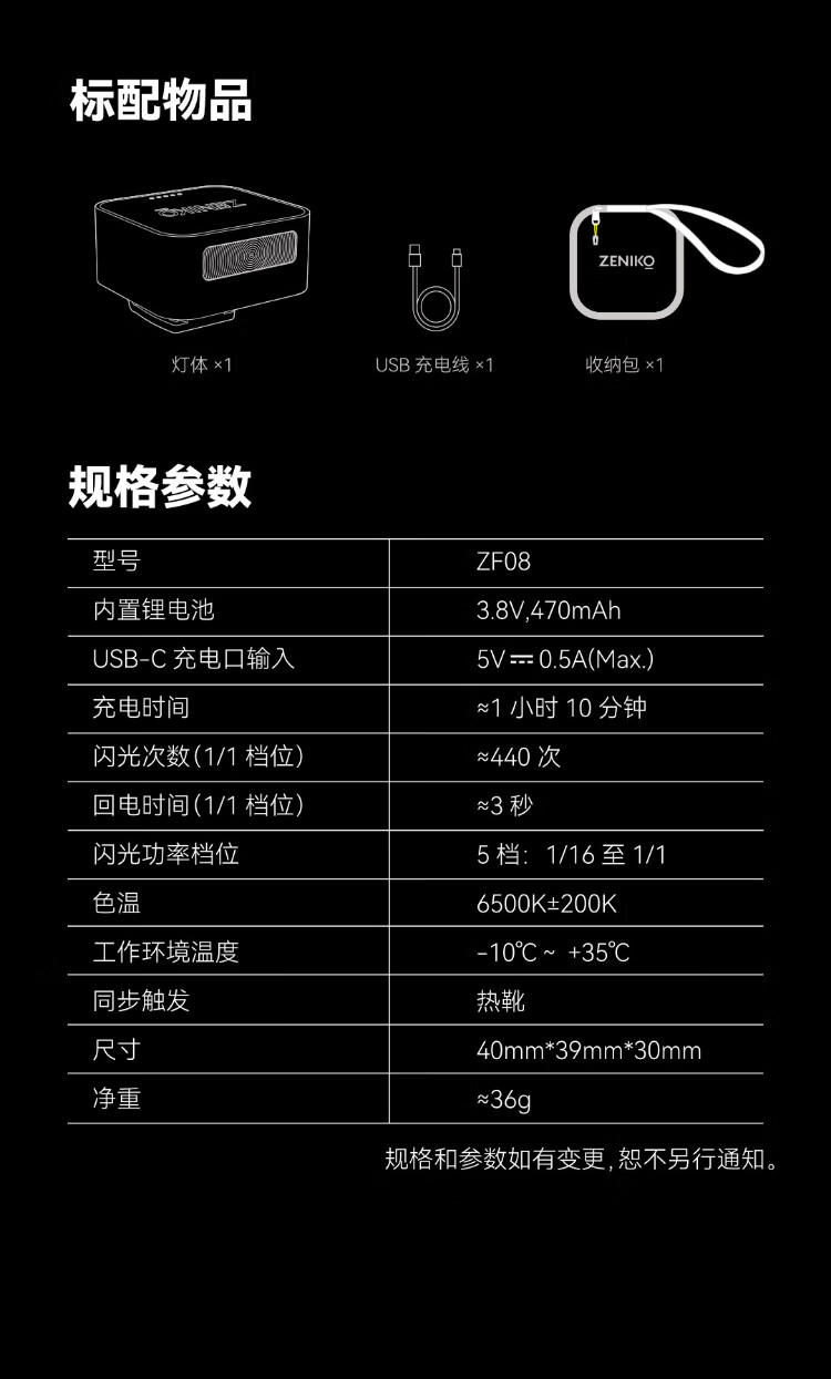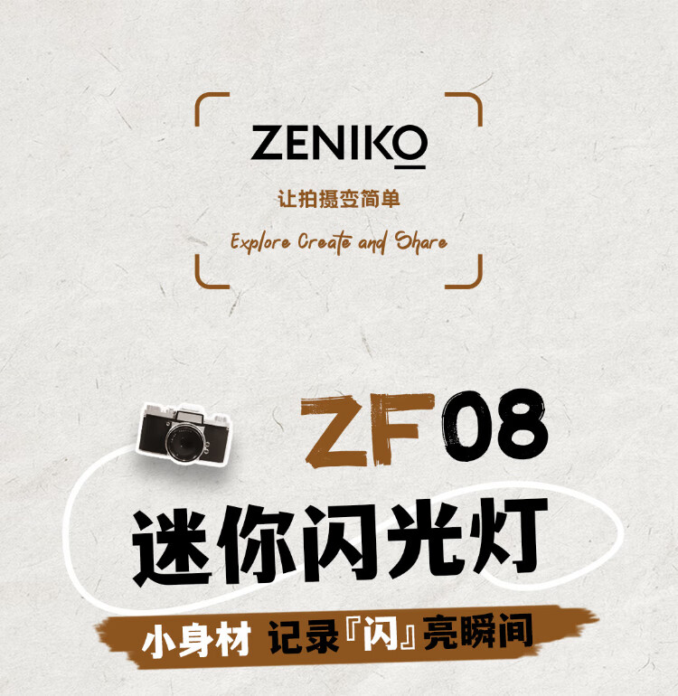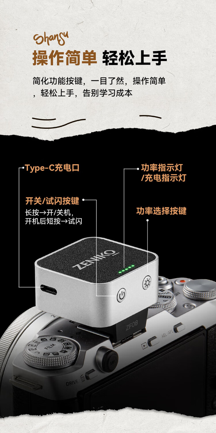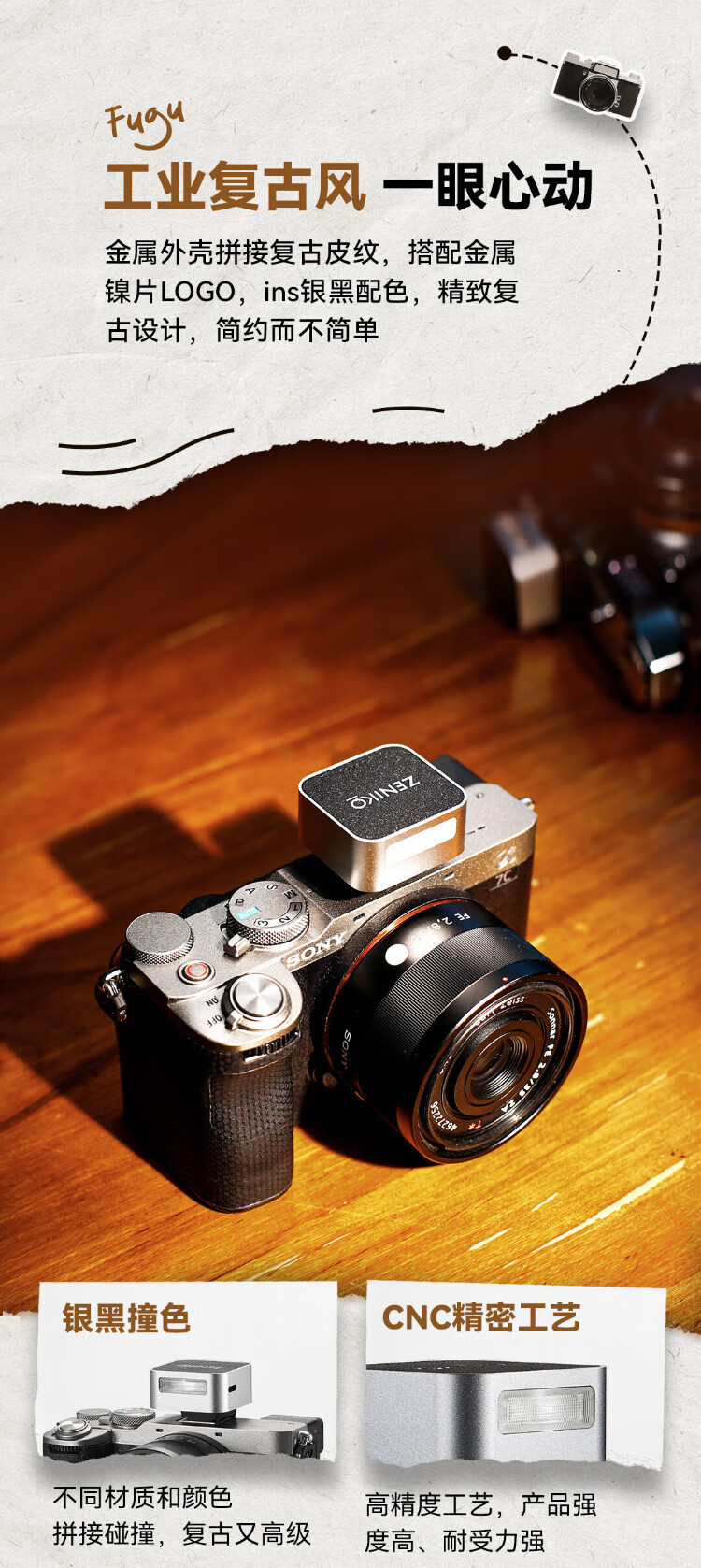 ZENIKOZF08 mini flash (black) diffuser combination long battery life Fuji Ricoh Olympus Nikon Sony Canon universal port