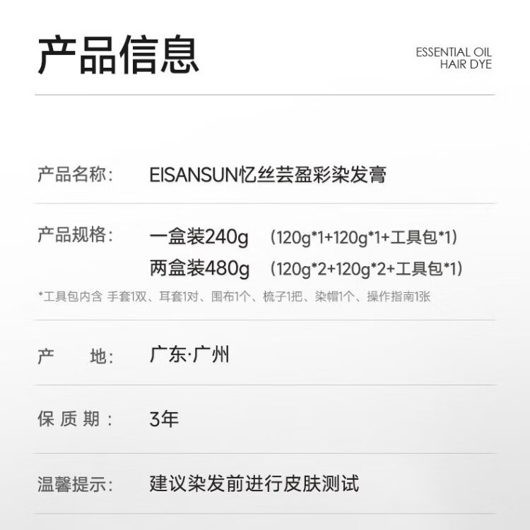 Yisiyun hair dye cold-extracted black coffee essential oil hair dye plant self-dyed pure no-bleach natural linen brown 240ml