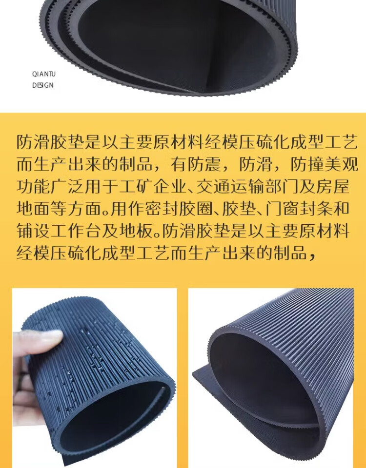 Jingxingong Rubber Sheet Black Anti-Slip Insulating Rubber Mat Carriage Floor Mat Pinstripe 0.5m*1m*5mm