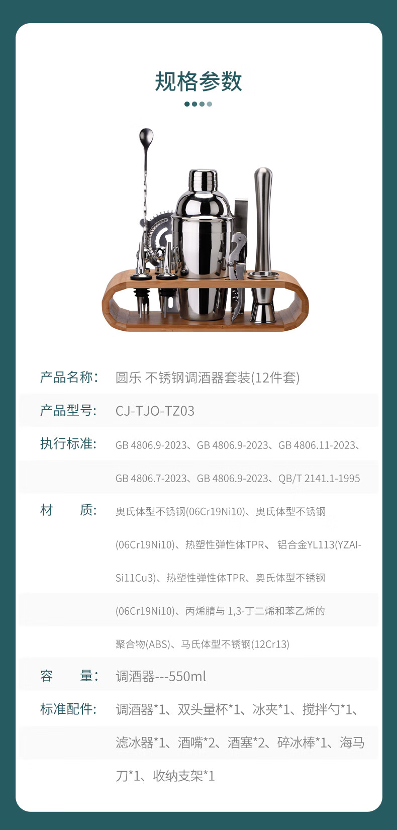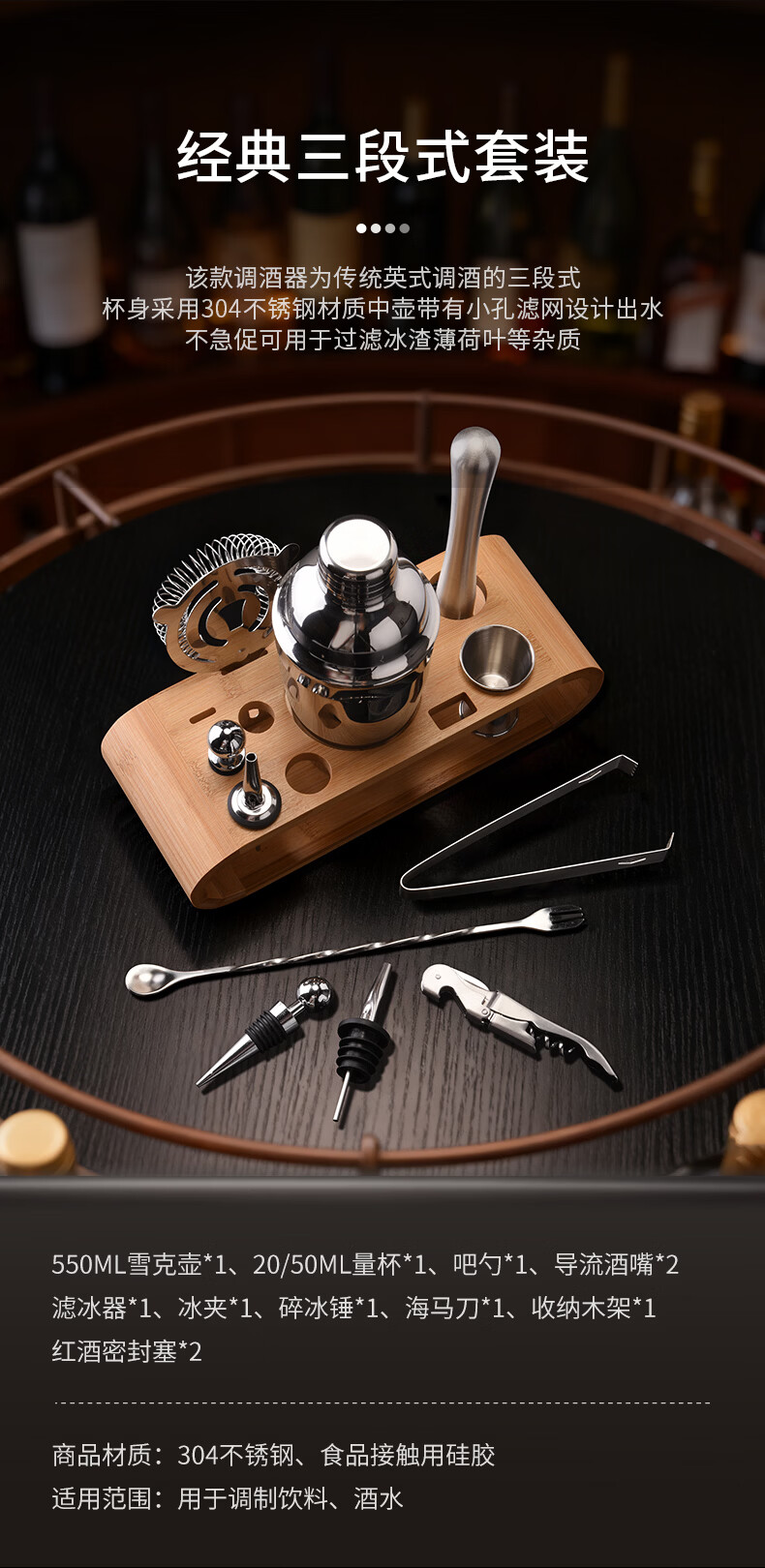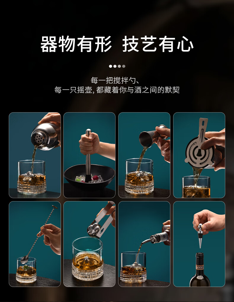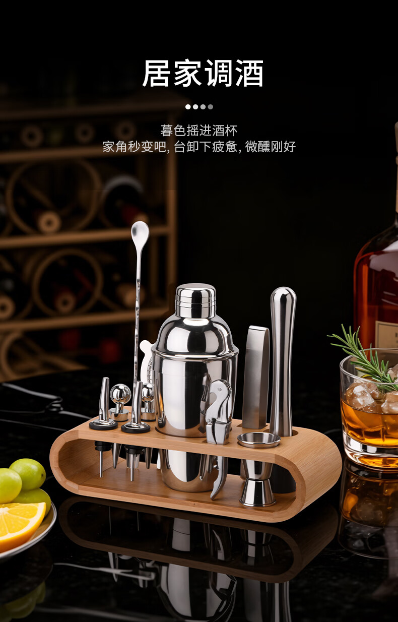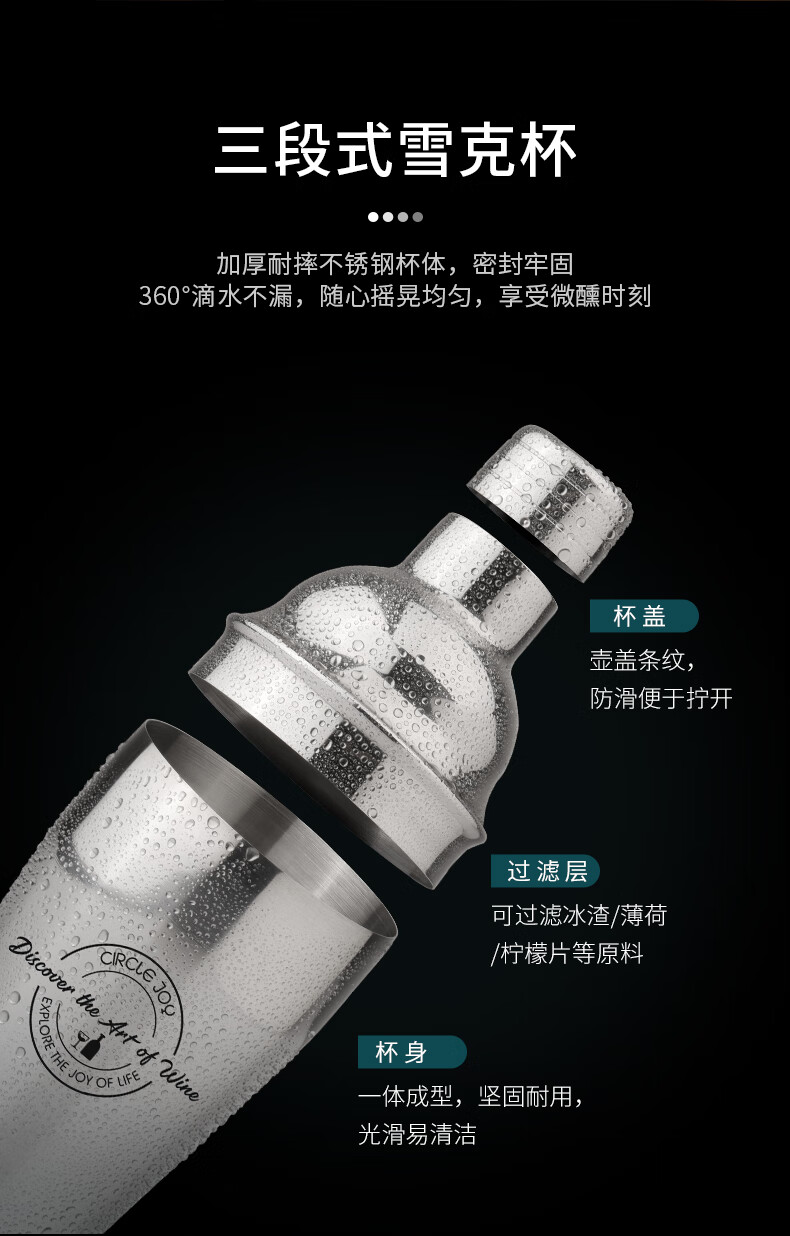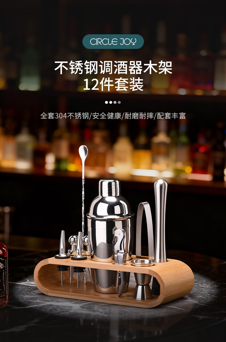 Circle Joy 304 stainless steel cocktail shaker, milk tea shop hand-made lemon artifact cocktail hand-shake shaker cup and pot 12-piece set