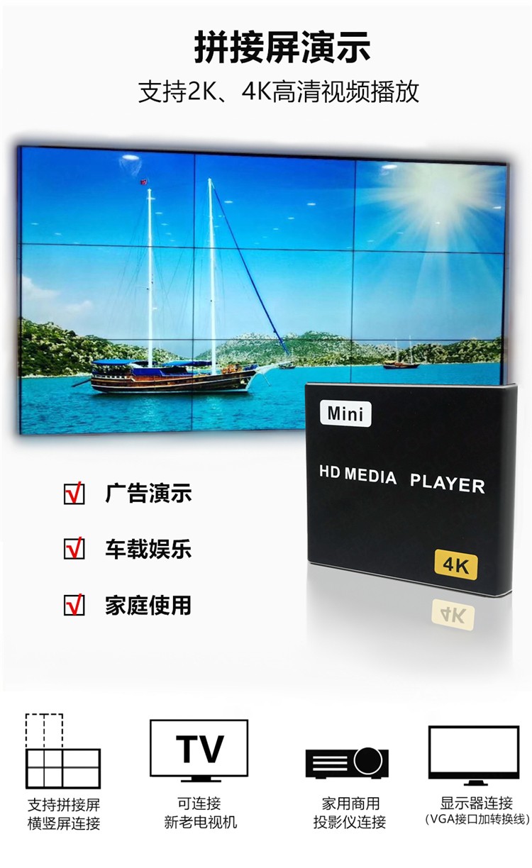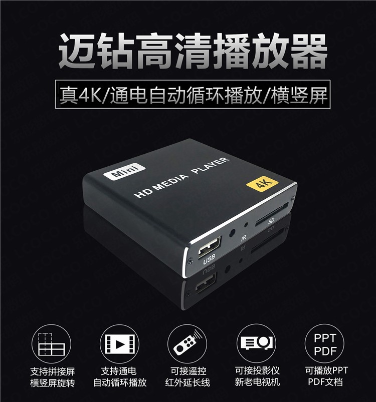 Maizuan H8 high-definition 4K advertising splicing screen HDMI automatic cycle horizontal and vertical screen PPT car U disk hard disk player network box TV set-top box H8 standard + infrared extension cable + USB power supply cable official standard