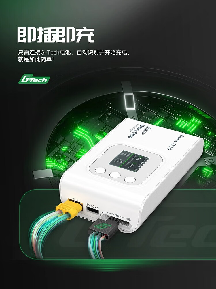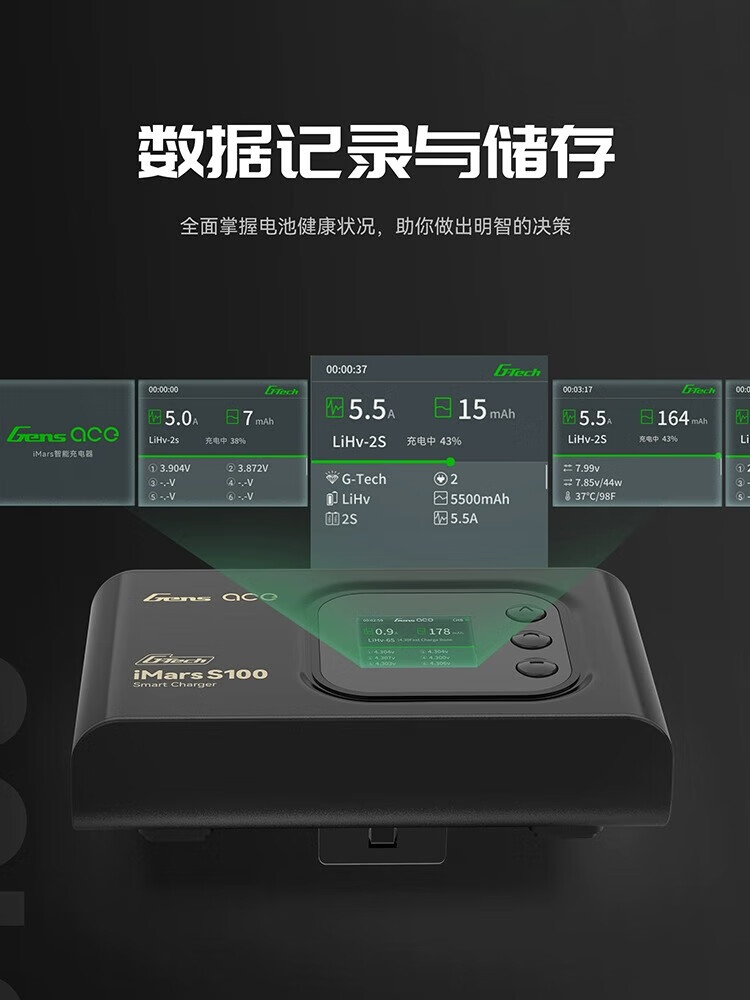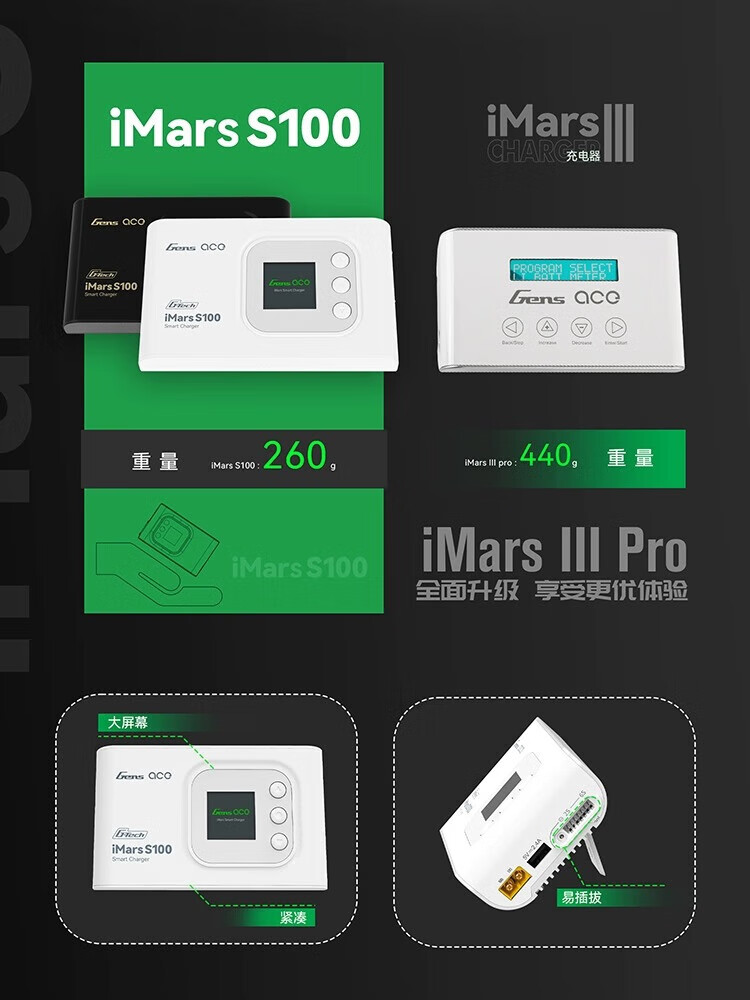 ACE iMars S100 10A 100W 2S~6S G-Tech smart model charger built-in power supply single channel black Chinese version with adapter cable