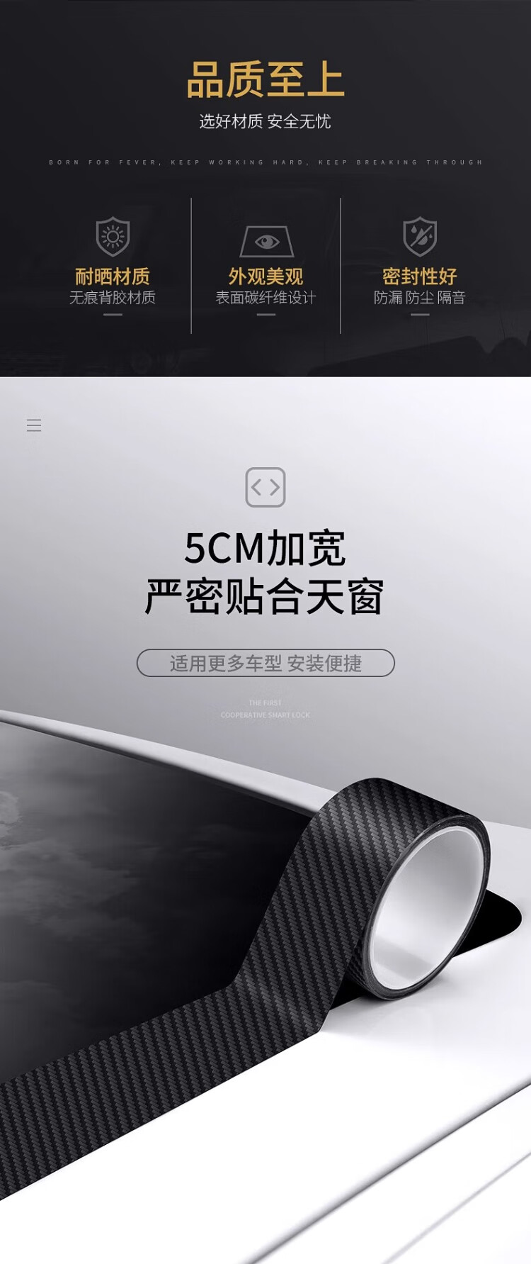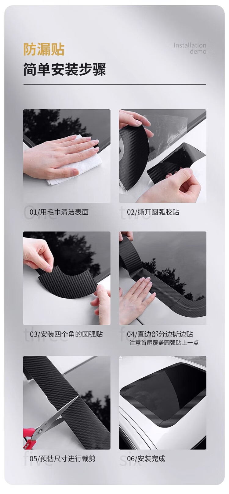 Tamshi car sunroof seal waterproof sticker roof glass anti-leakage tape car rain-proof seal anti-water ingress film car seal-5cm-4 pieces-1 set
