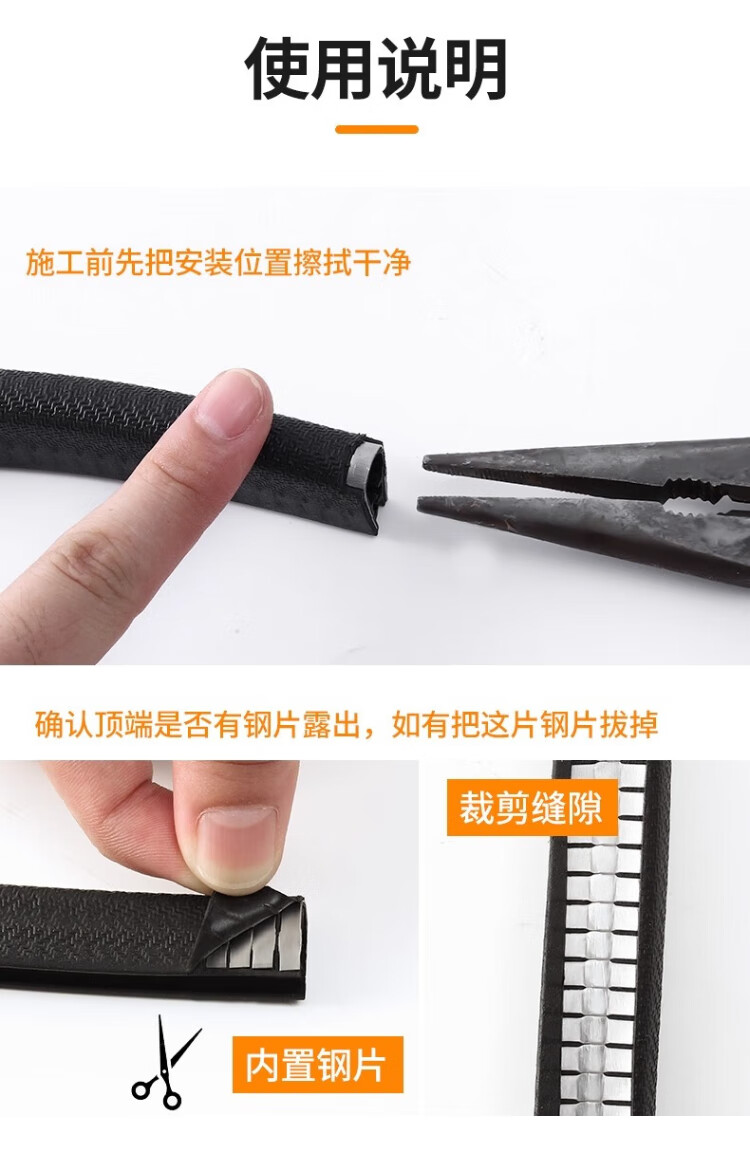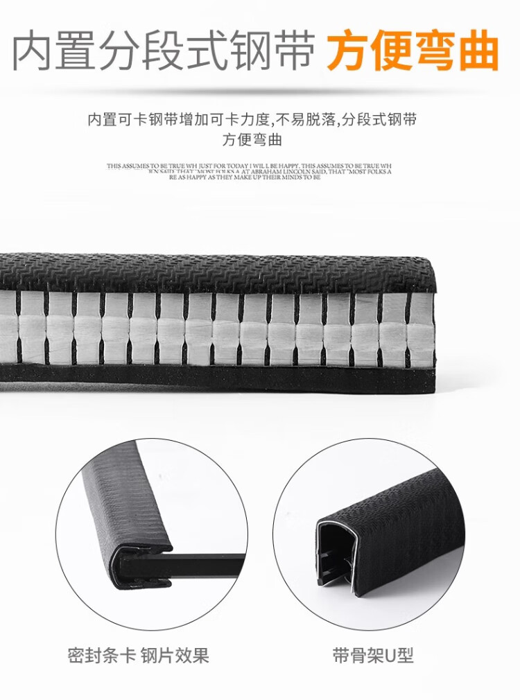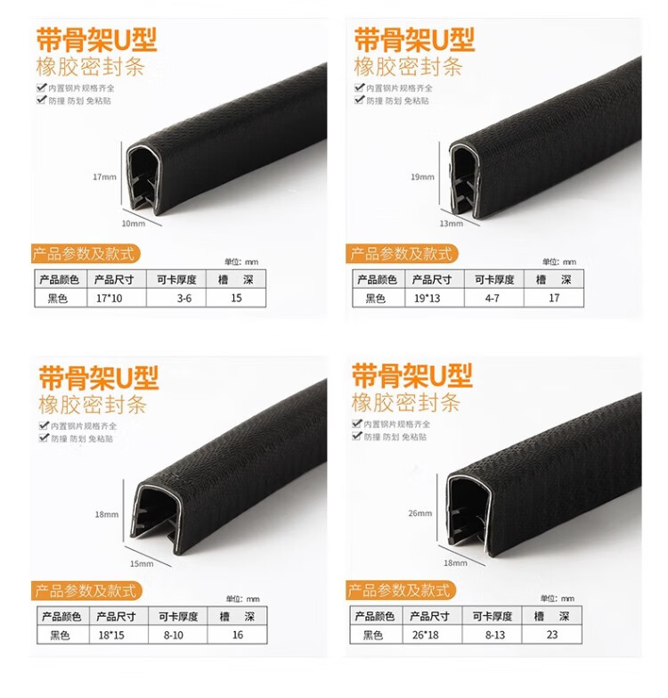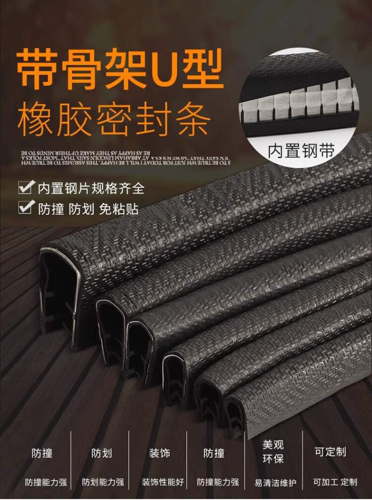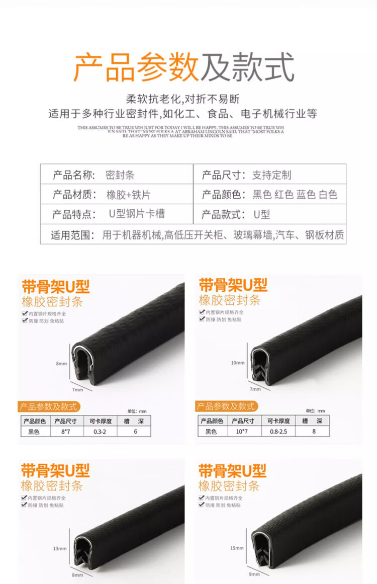 Tamushi rubber edging strip U-shaped skeleton sealing strip mechanical sheet metal bridge anti-cut hand decorative mouth protection strip card strip 7mm wide 10mm high card 0.8-2.5mm - black - 5 meters