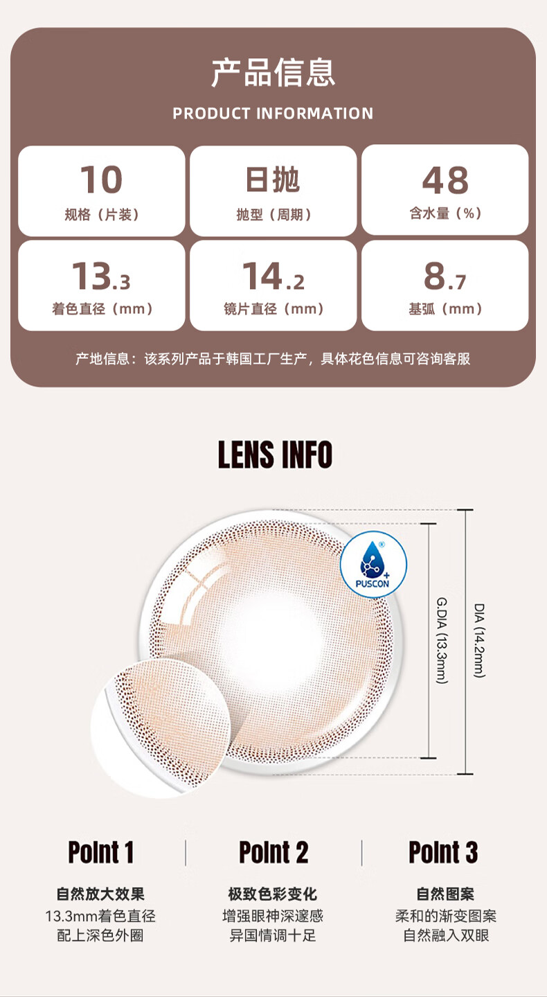Olens Korean original imported RUSSIAN SMOKY daily disposable 10 pieces, contact lens, genuine, Hong Kong direct mail, Brown 0 degree