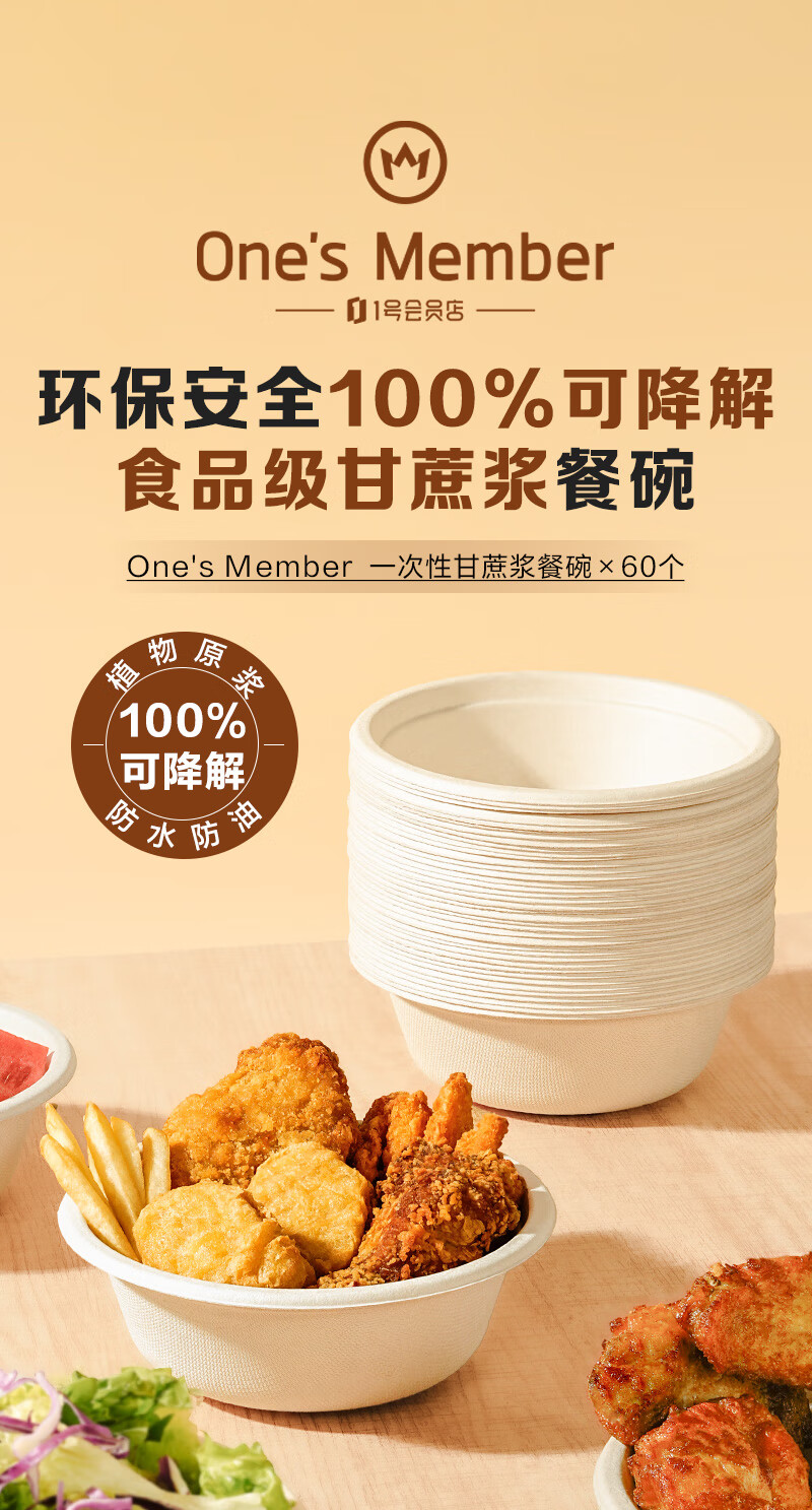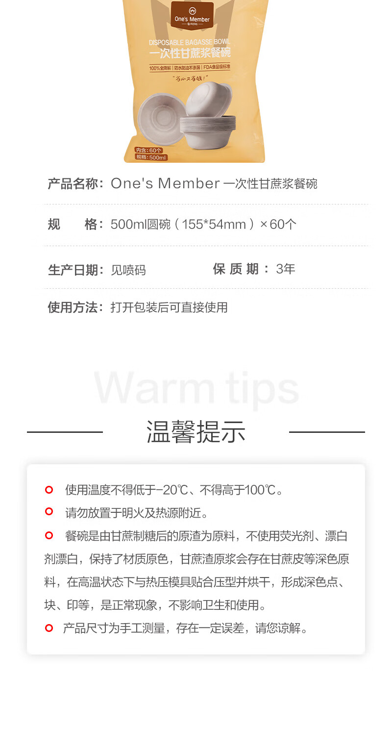 One s Member Disposable 500ml pulp bowl, one size fits all *60 pieces