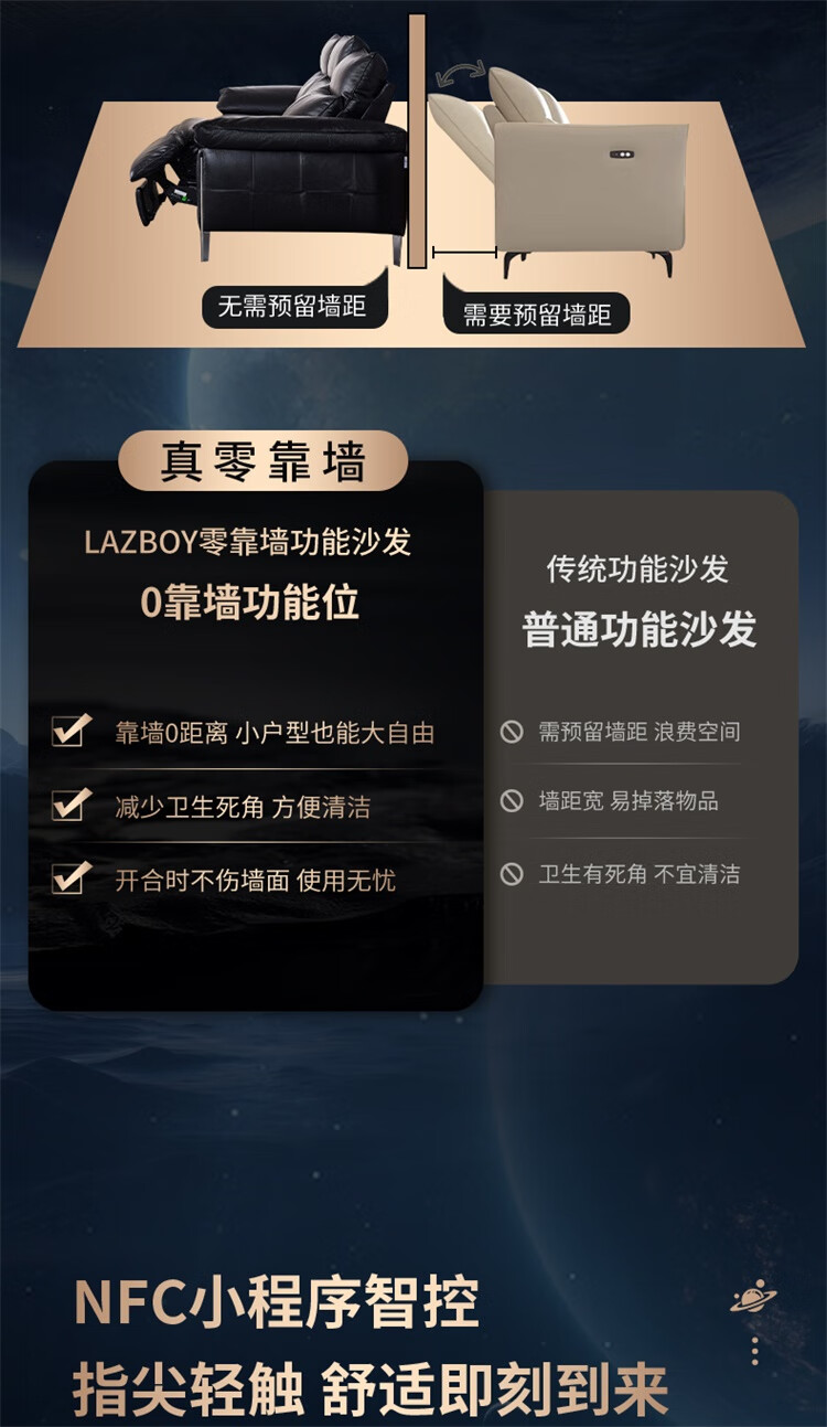 LAZBOYLAZBOY Star Walk full leather 0 wall-mounted electric functional sofa black 2.91m counter same style 7 days
