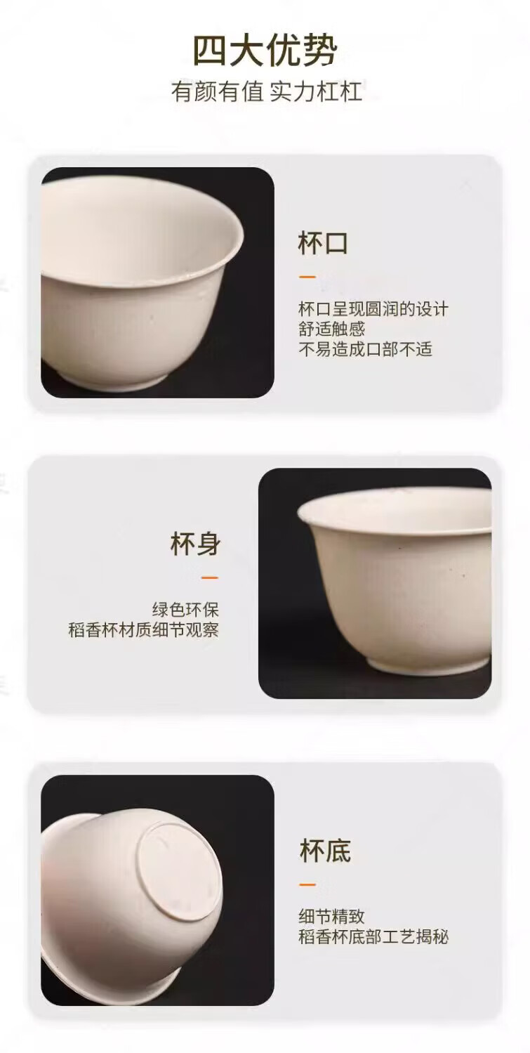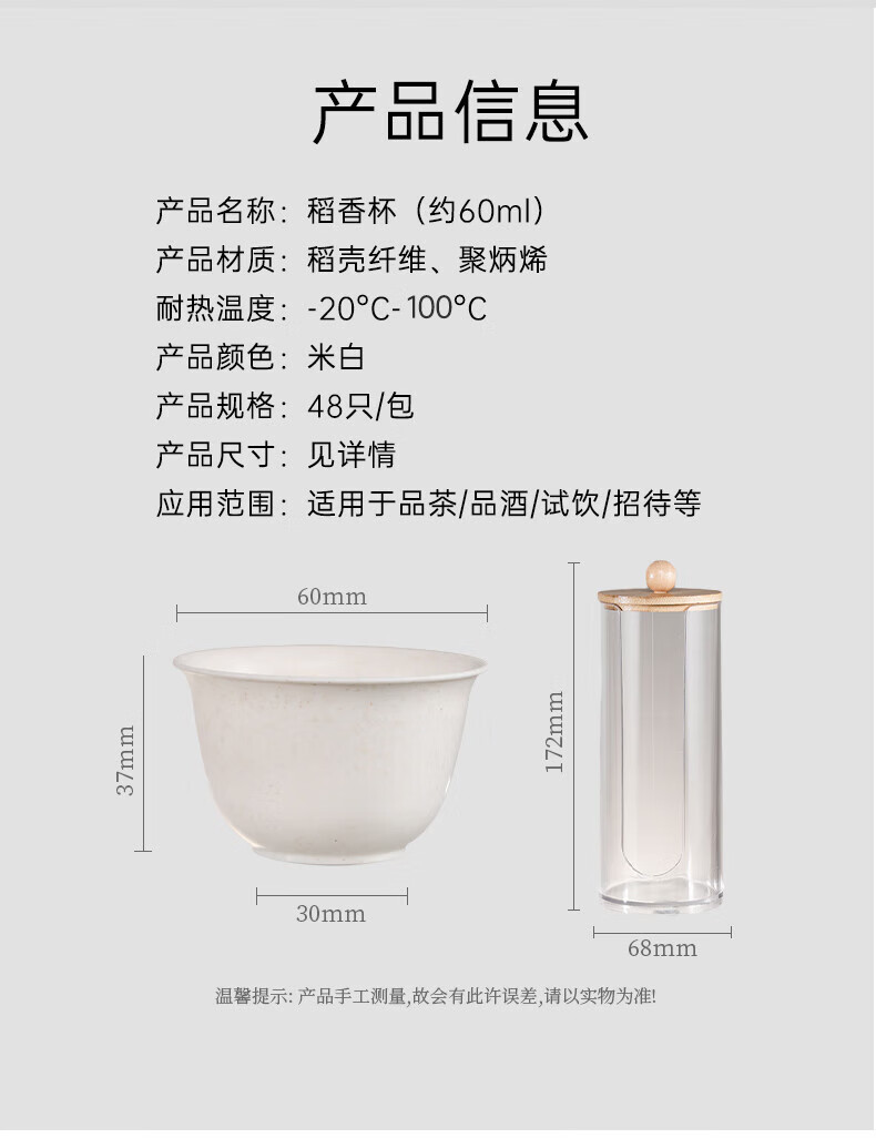 PAKCHOICE disposable kung fu tea cup 60ml degradable rice husk tea cup high-end heat-resistant tea cup 192 pieces