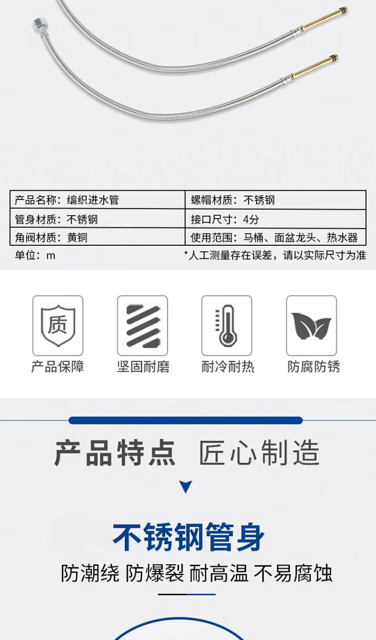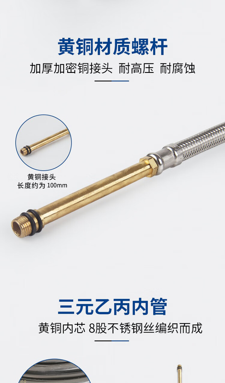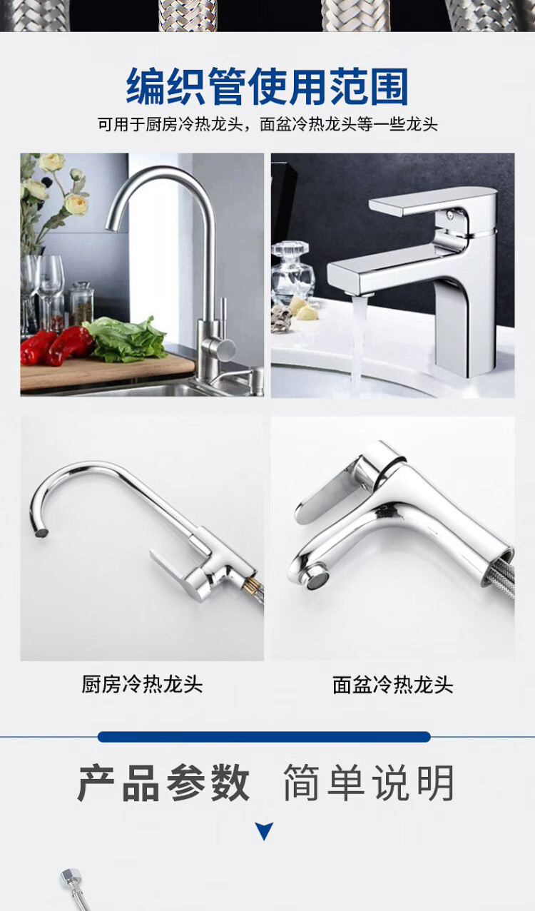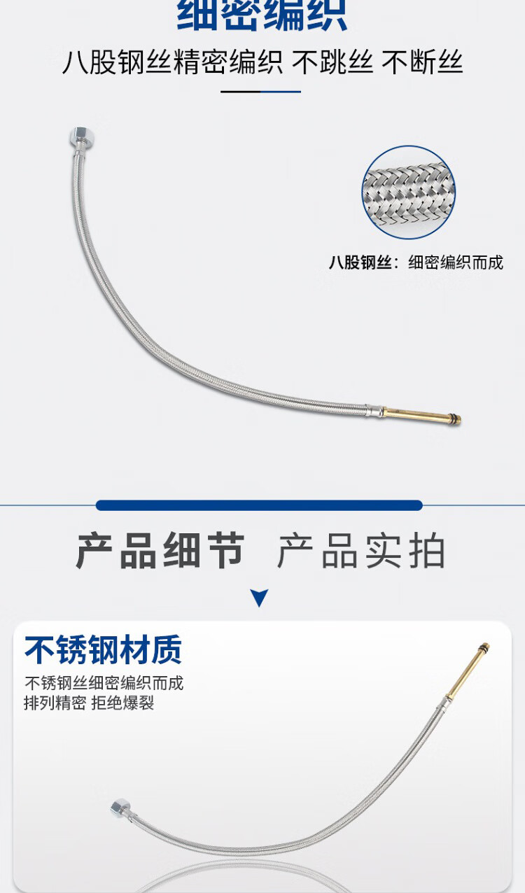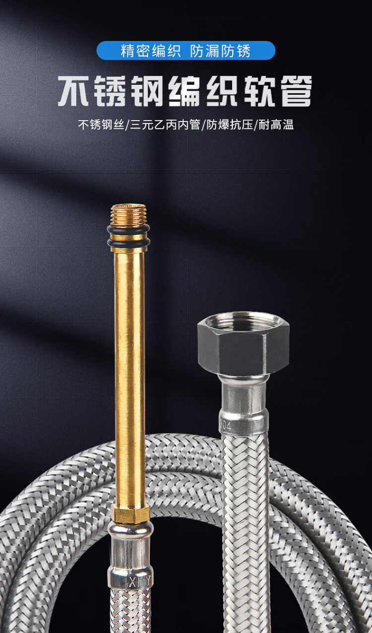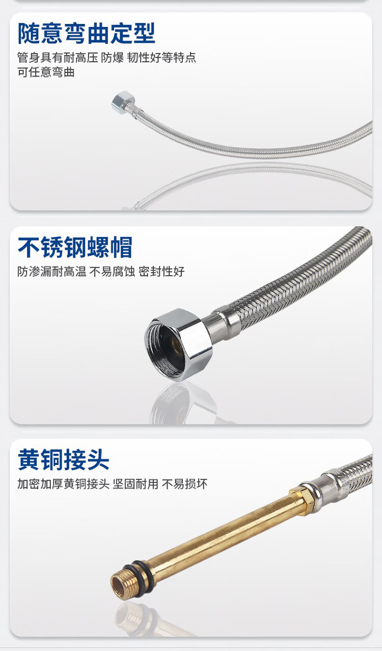 Weigusi universal faucet hose stainless steel water supply hose 80cm set of two 304 stainless steel mixed wire explosion-proof pipe 4 points national standard steel cap + 100mm spout kitchen and bathroom accessories