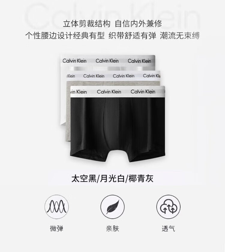 Calvin Klein underwear men's ck three-pack jacquard cotton anti-pinch low-waist boxer briefs L gift