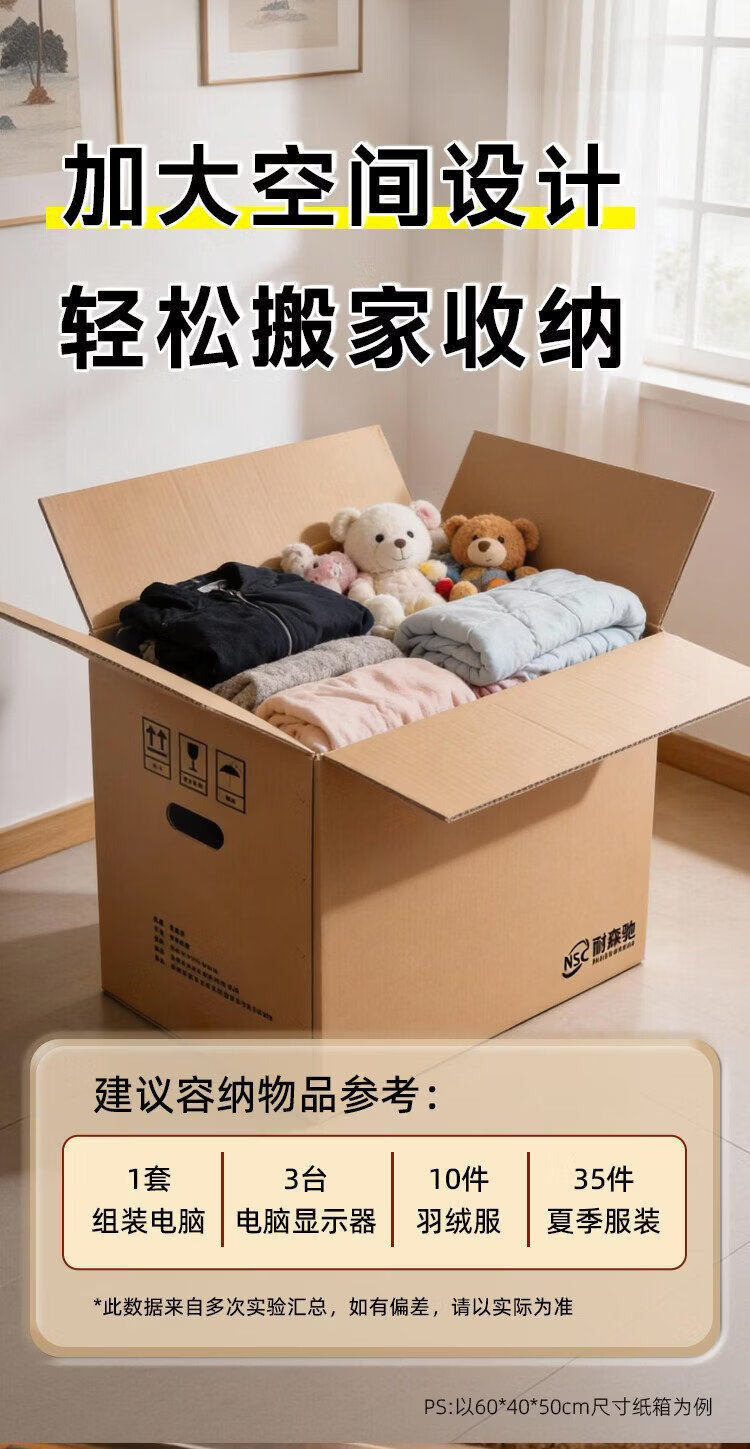Neisenchi Moving Carton Thickened Extra Large Carton Express Packing Box Storage Box Organizing Box Packing Carton Box 60*40*50cm/5 pieces/pack NBB-Z10