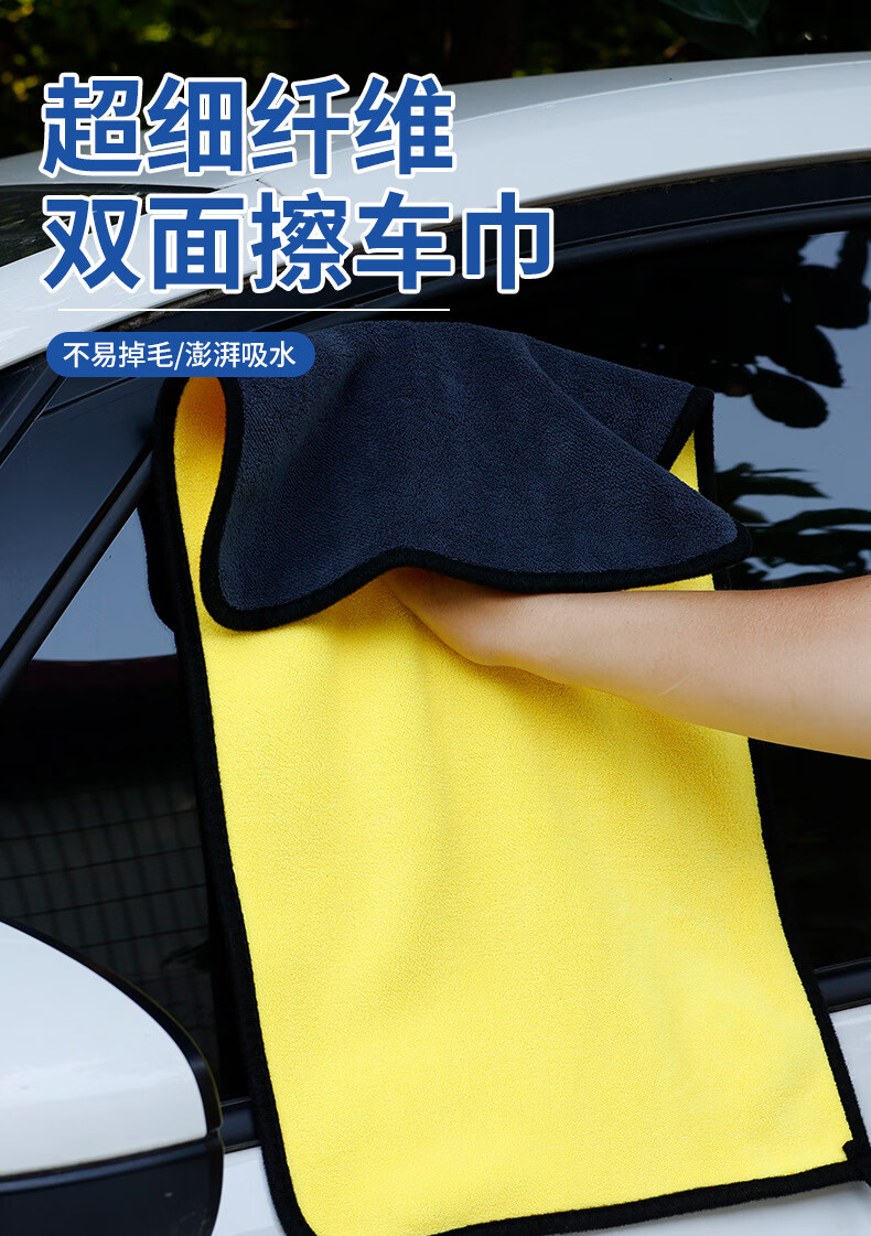 Pioneer coral velvet car wipes, car wash towels, fiber rags, thickened water-absorbent two-color double-sided car towels, gray and yellow 600g/ 30*60cm (minimum order of 10 pieces)