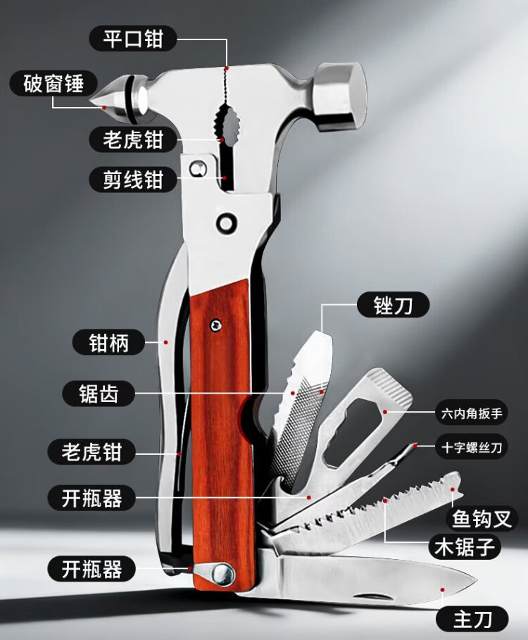 Fengshang car window breaker multi-functional safety hammer 16-in-1 car and home dual-purpose fire emergency escape hammer with cutter