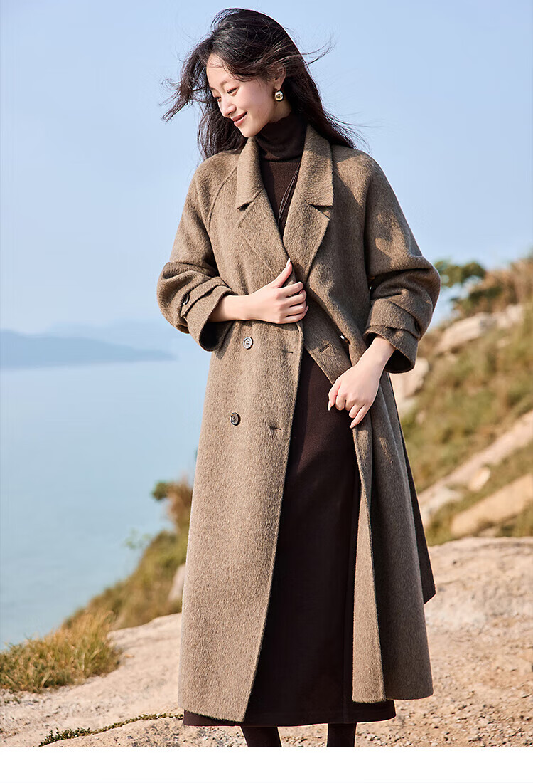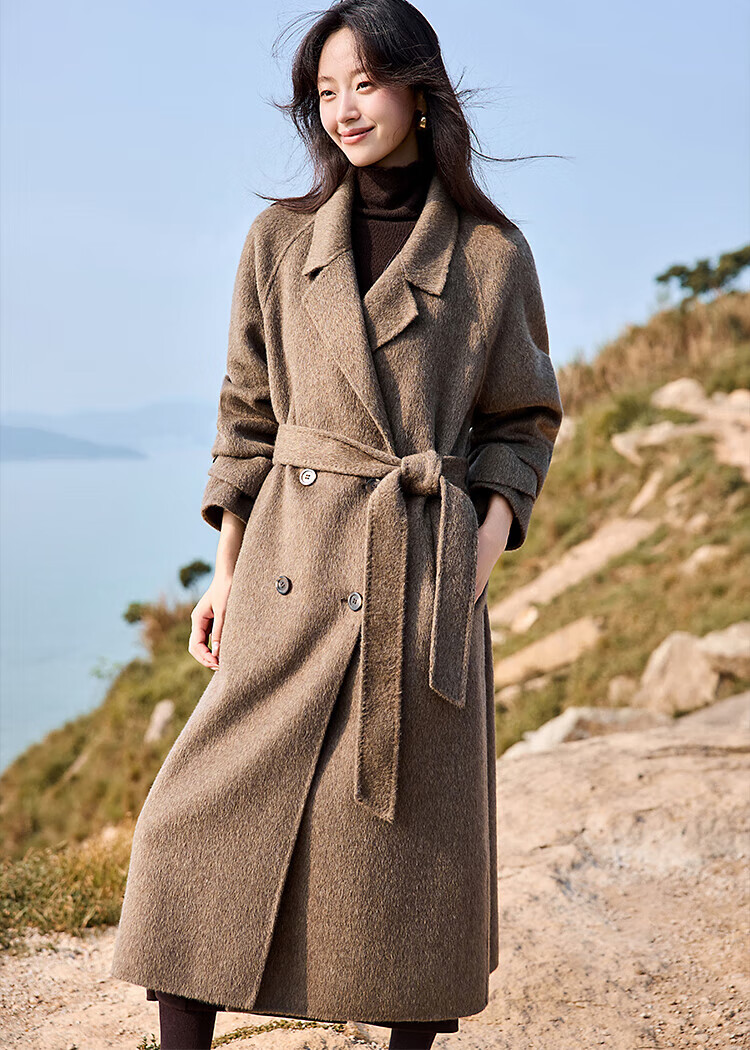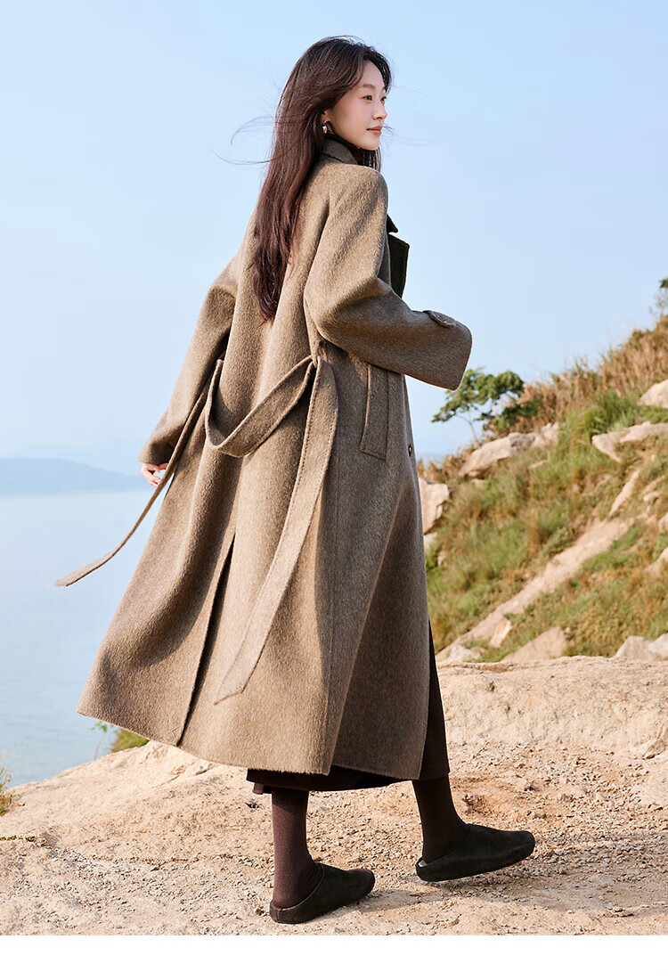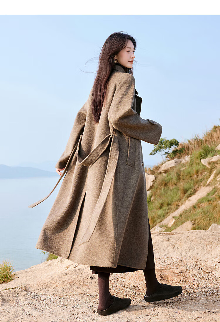 Mohan Yimei casual handmade wool double-sided woolen coat containing camel hair 25 winter long lace-up woolen coat