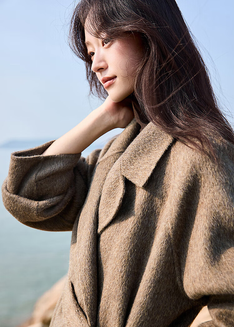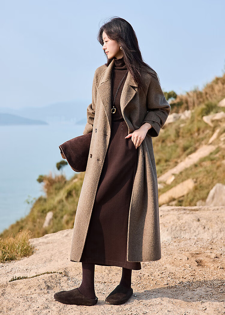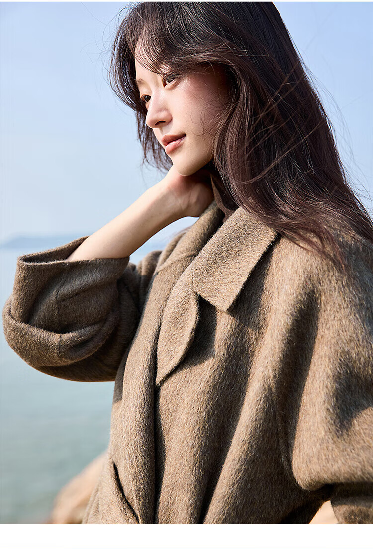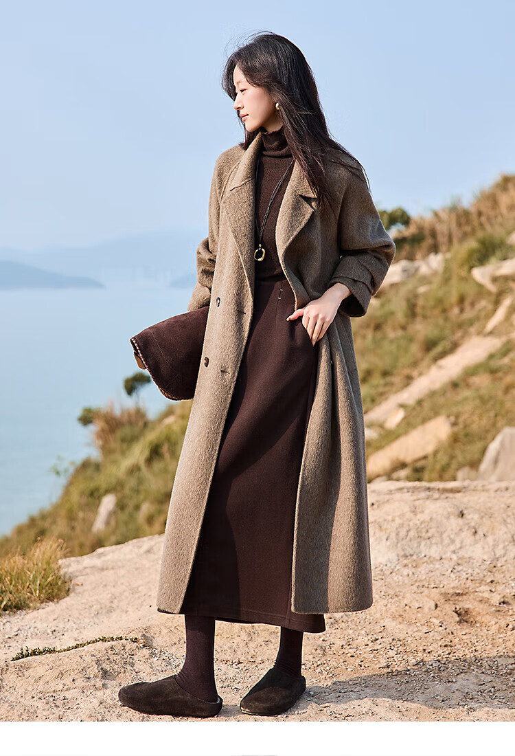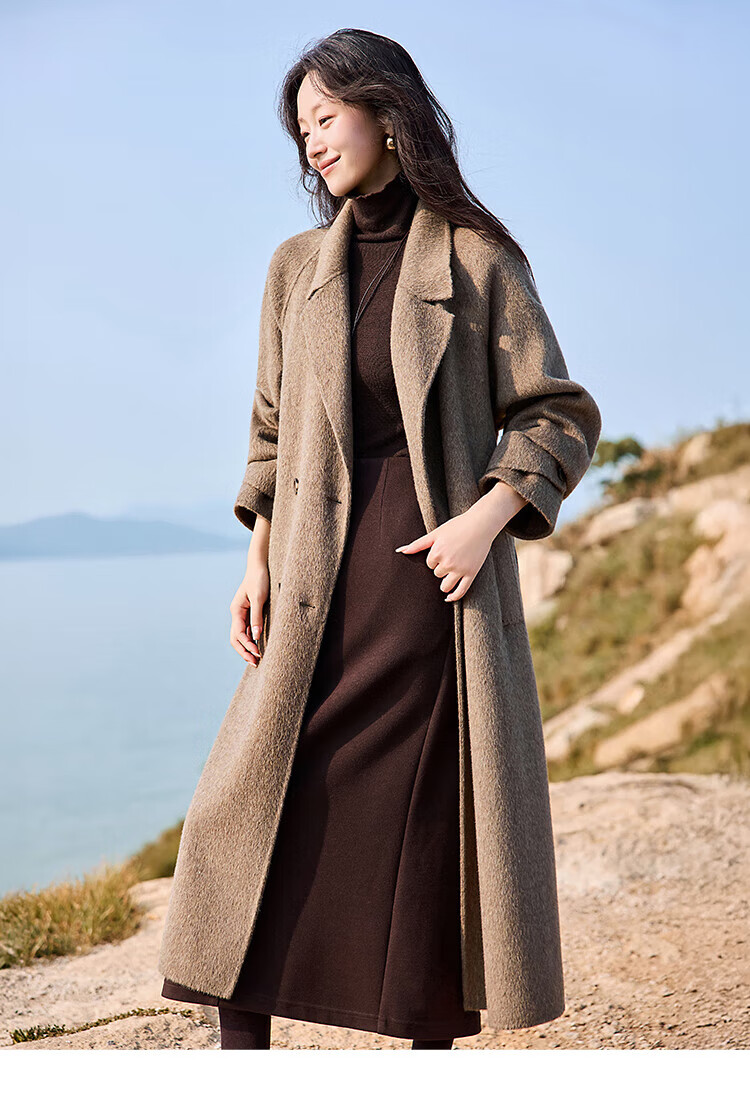 Mohan Yimei casual handmade wool double-sided woolen coat containing camel hair 25 winter long lace-up woolen coat