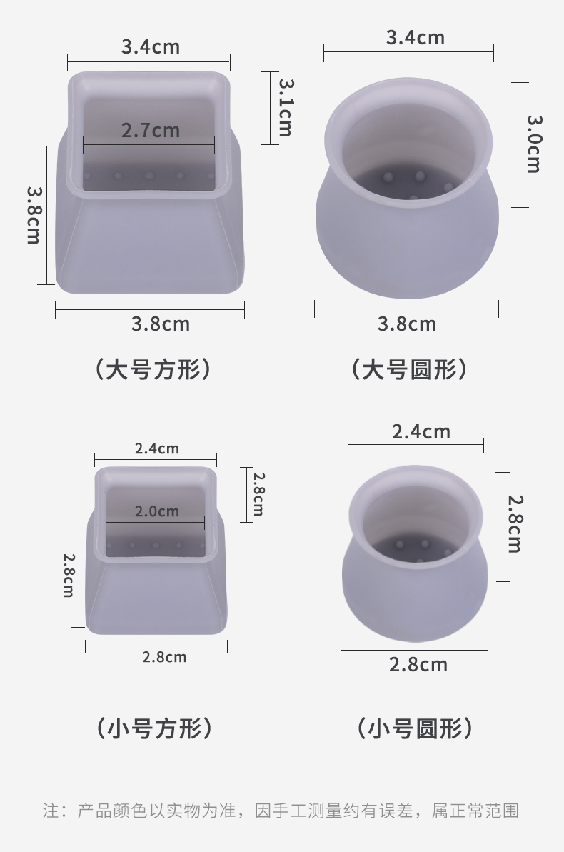 Chair foot covers, silent wear-resistant stools, non-slip wooden floor protective covers, furniture table leg pads, silicone table and chair foot pads, square-grey 16-pack, suitable for table corners with a length and width of 3.5-4CM