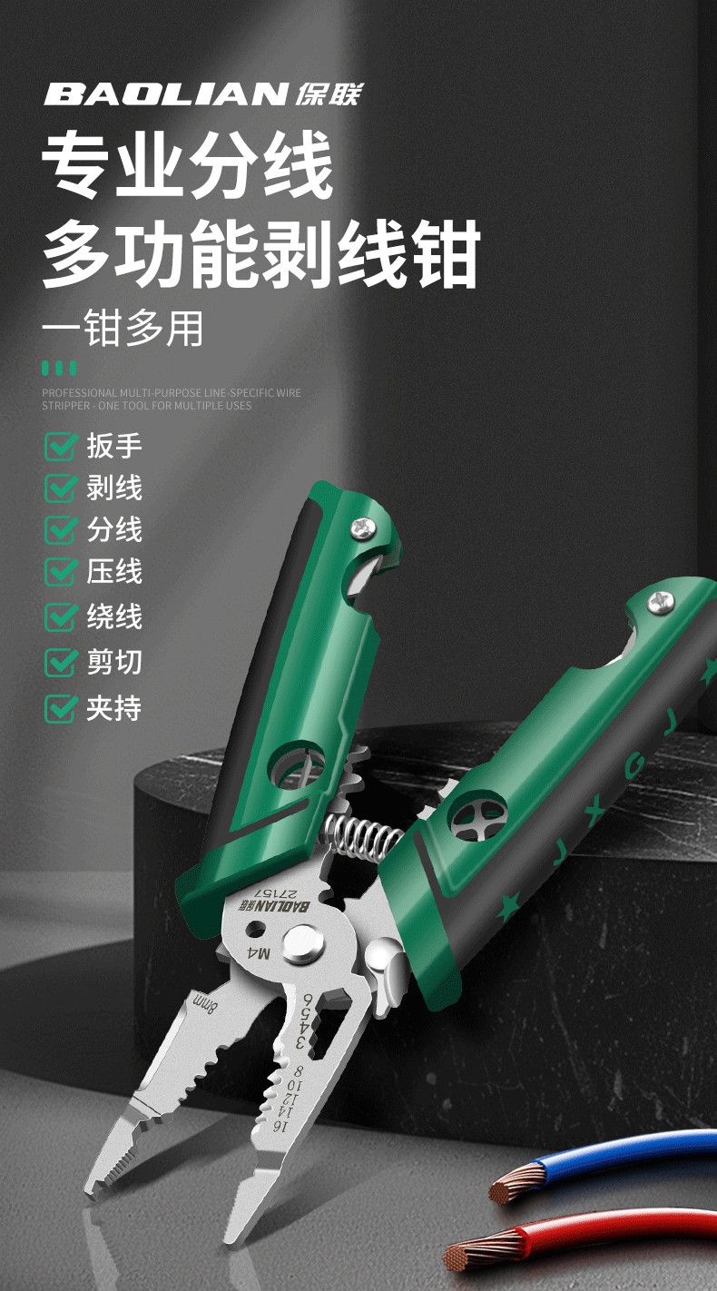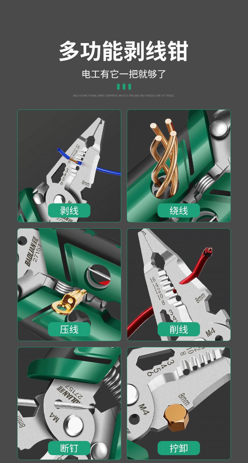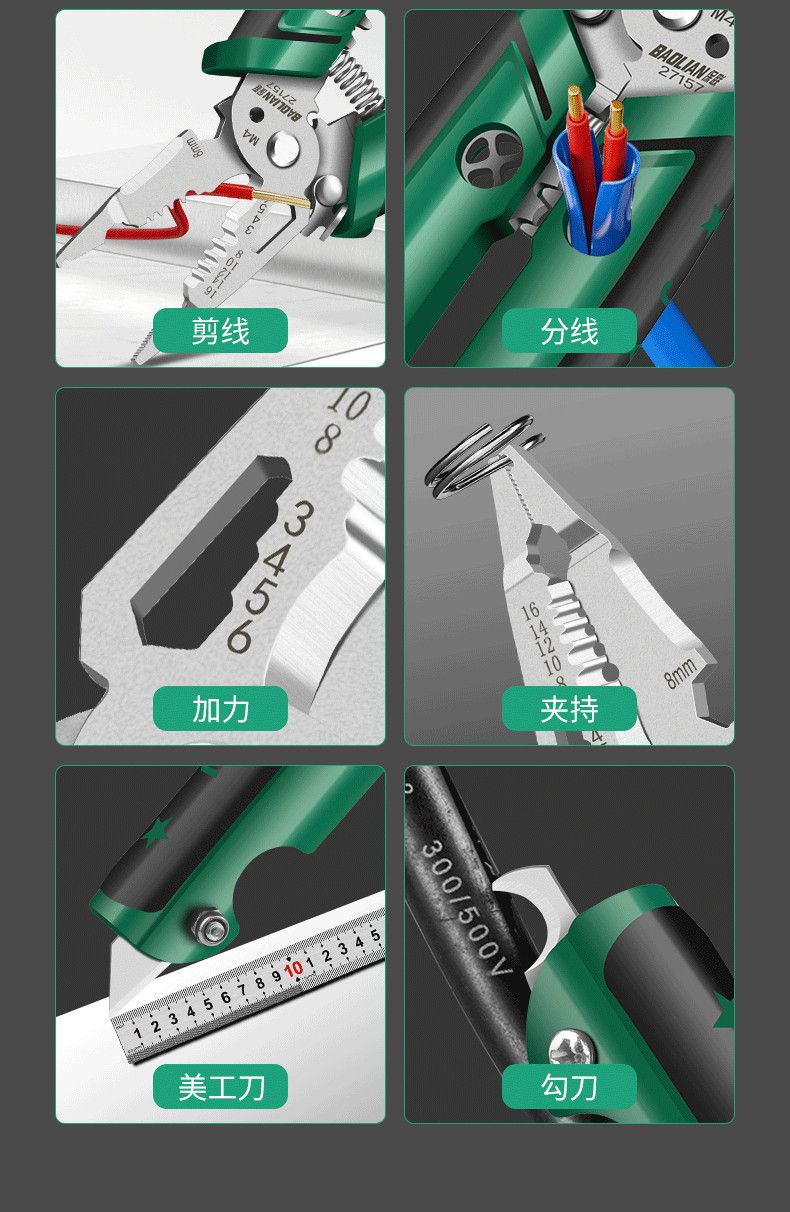 Baolian multi-functional wire stripping pliers, industrial grade electrician branching wire crimping pliers, wire cutting pliers, peeling pliers, wire cutters