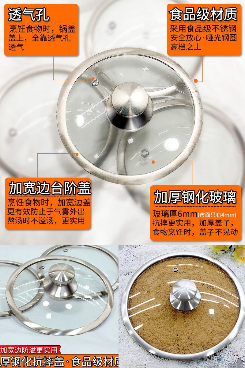 Meifeng tempered glass lid universal explosion-proof thickened stainless steel wide edge see-through wok lid 16-32 small pot lid household lid 17 lid pot inner diameter 17-17.5