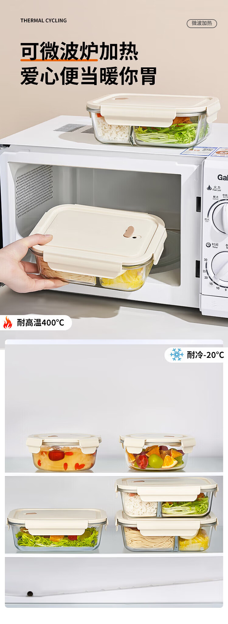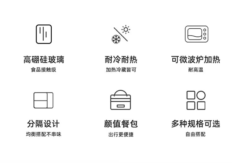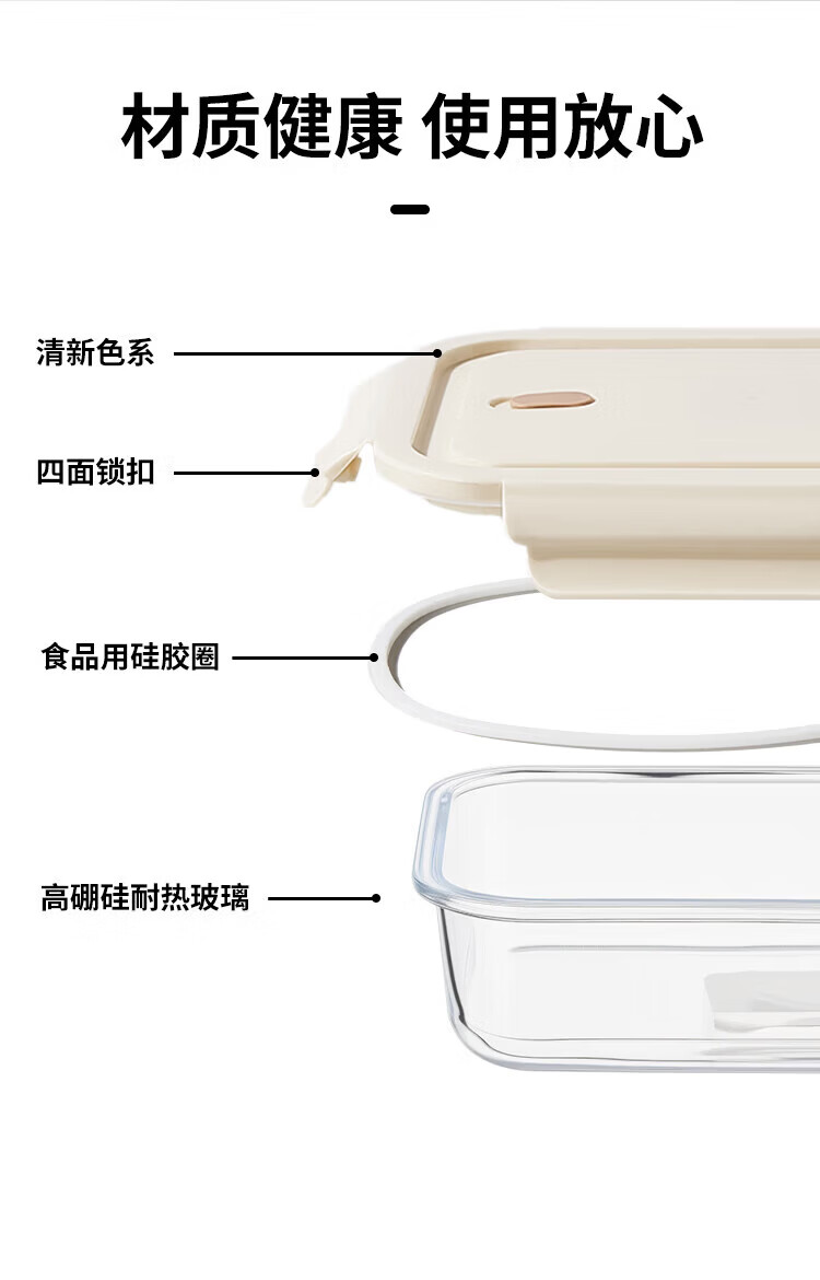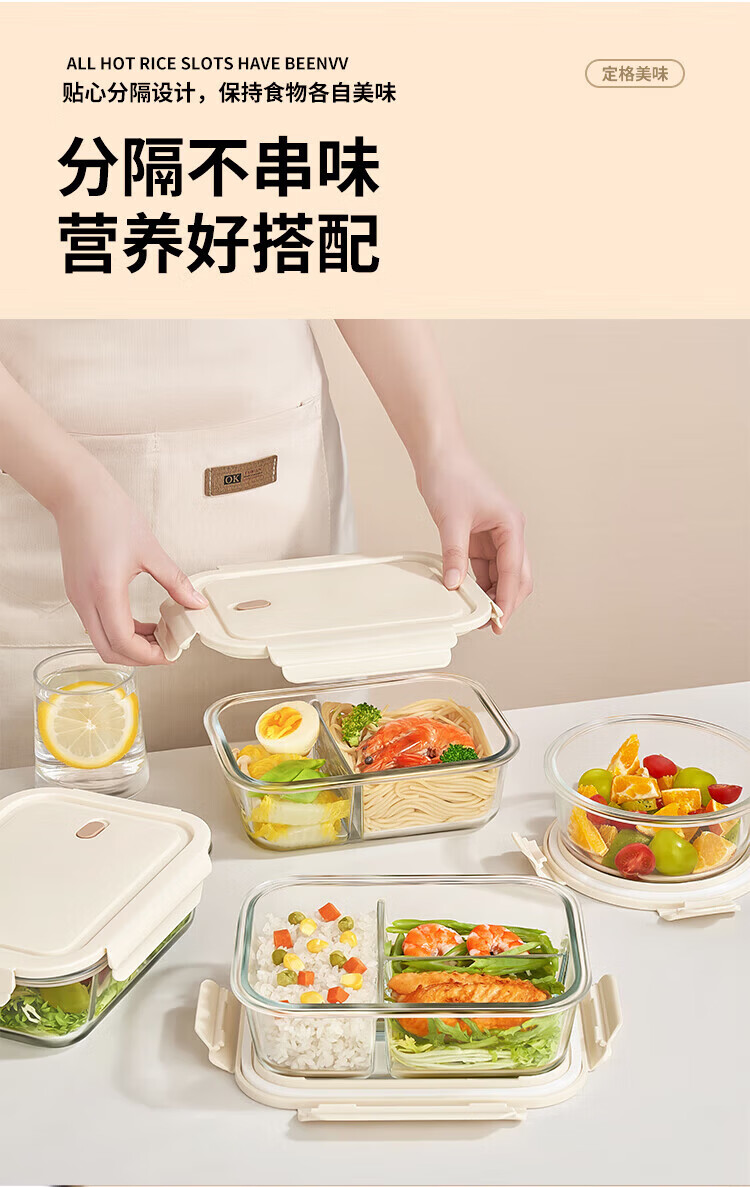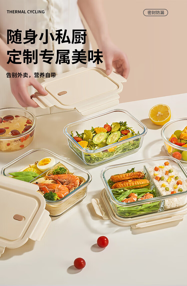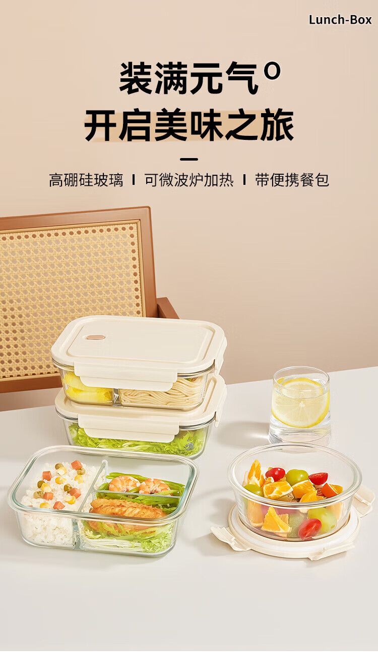Green apple high borosilicate heat-resistant glass lunch box for office workers with rice, microwaveable lunch box, crisper box 1L three-compartment with bag