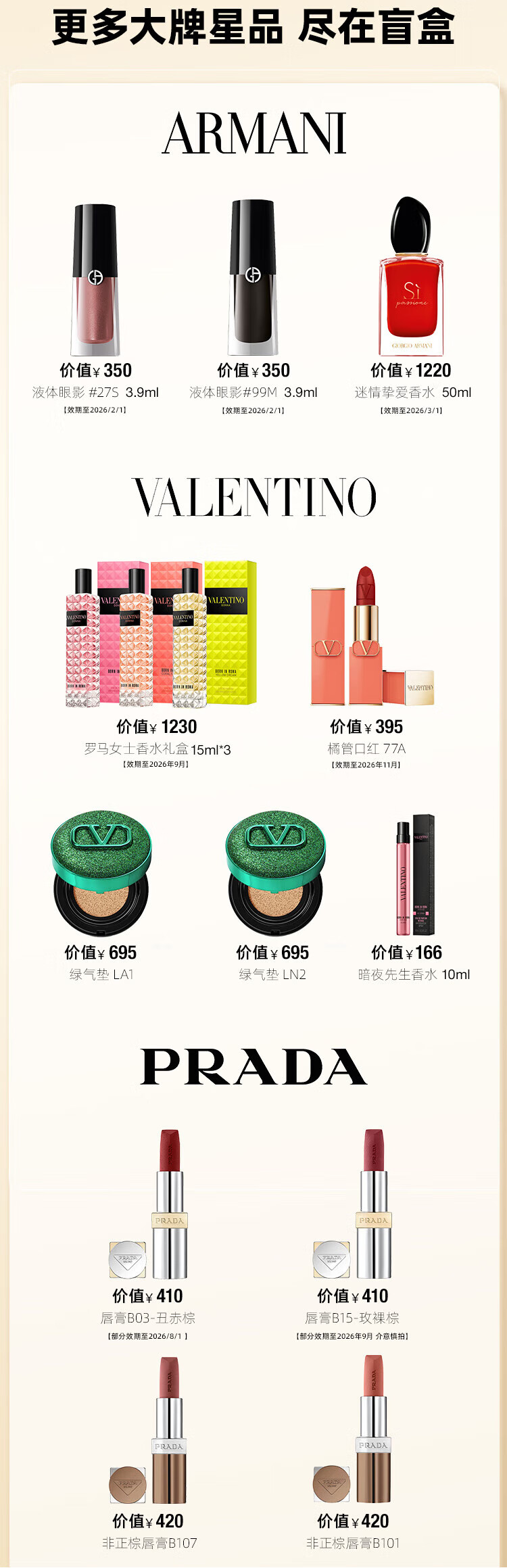 High-end beauty 499 blind box B contains 3-4 products (90% probability of opening a Valentino air cushion)