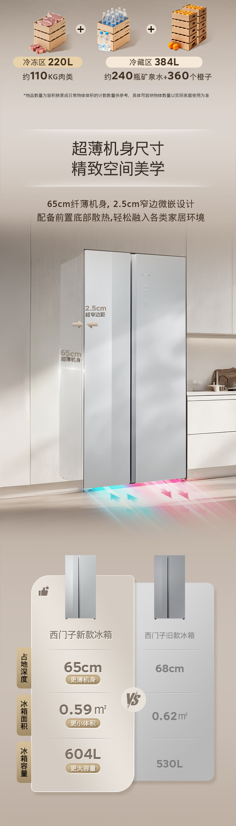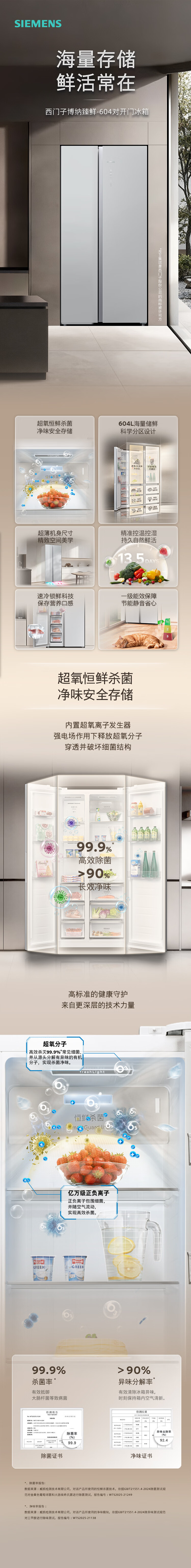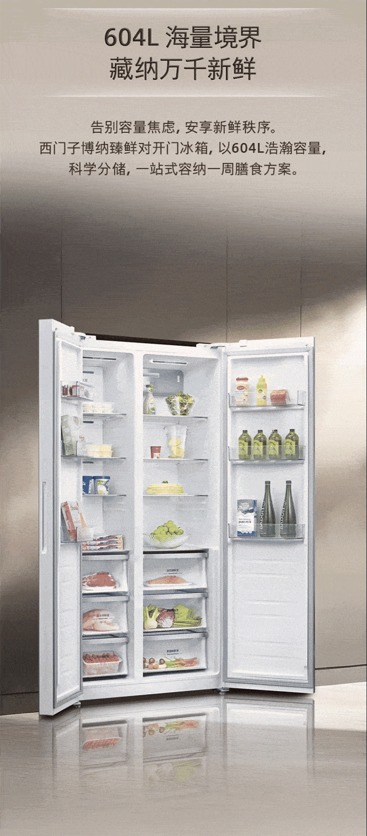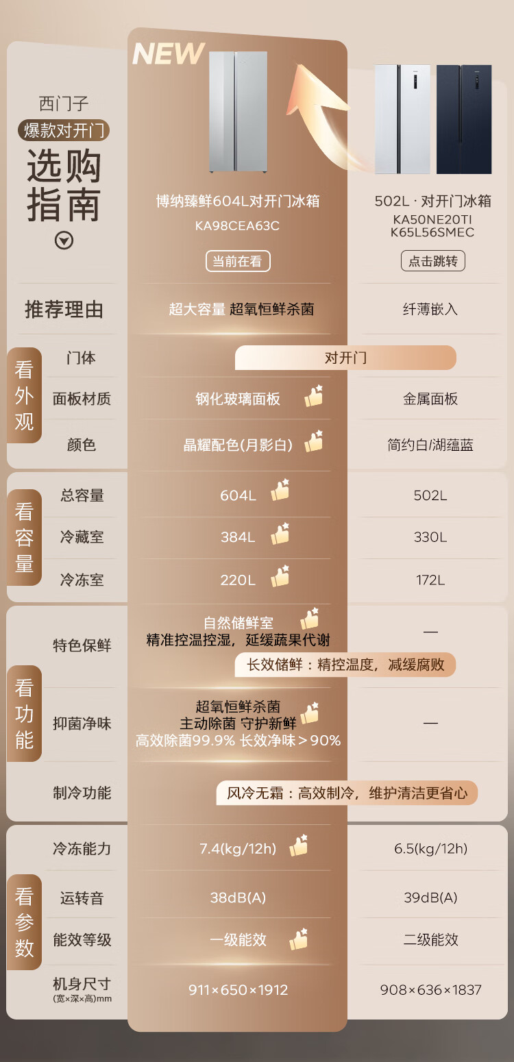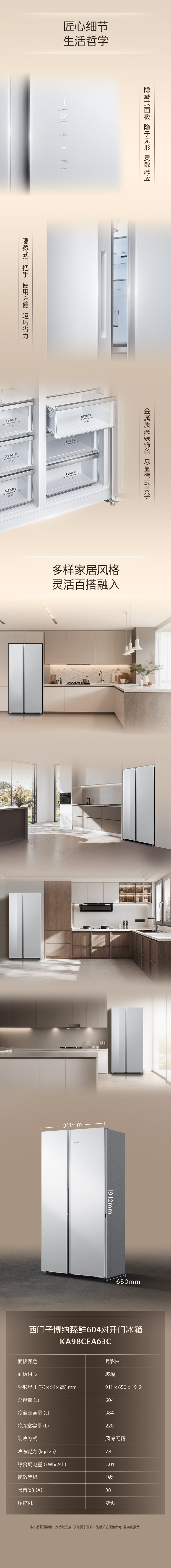 SIEMENS Bona Zhenxian 604L side-by-side refrigerator, super oxygen constant fresh sterilization, ultra-large capacity, scientific zoning, first-class energy efficiency Jingyao KA98CEA63C national subsidy