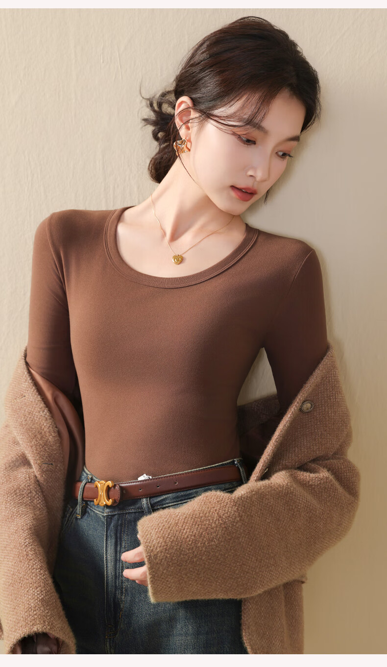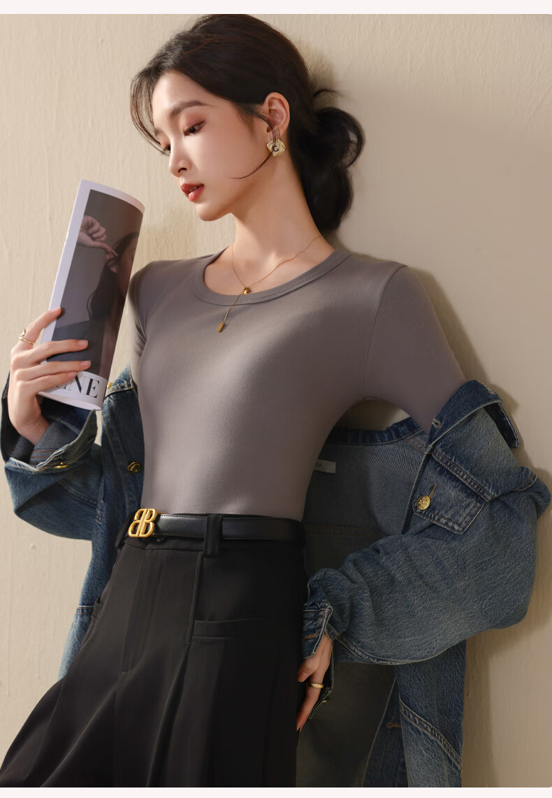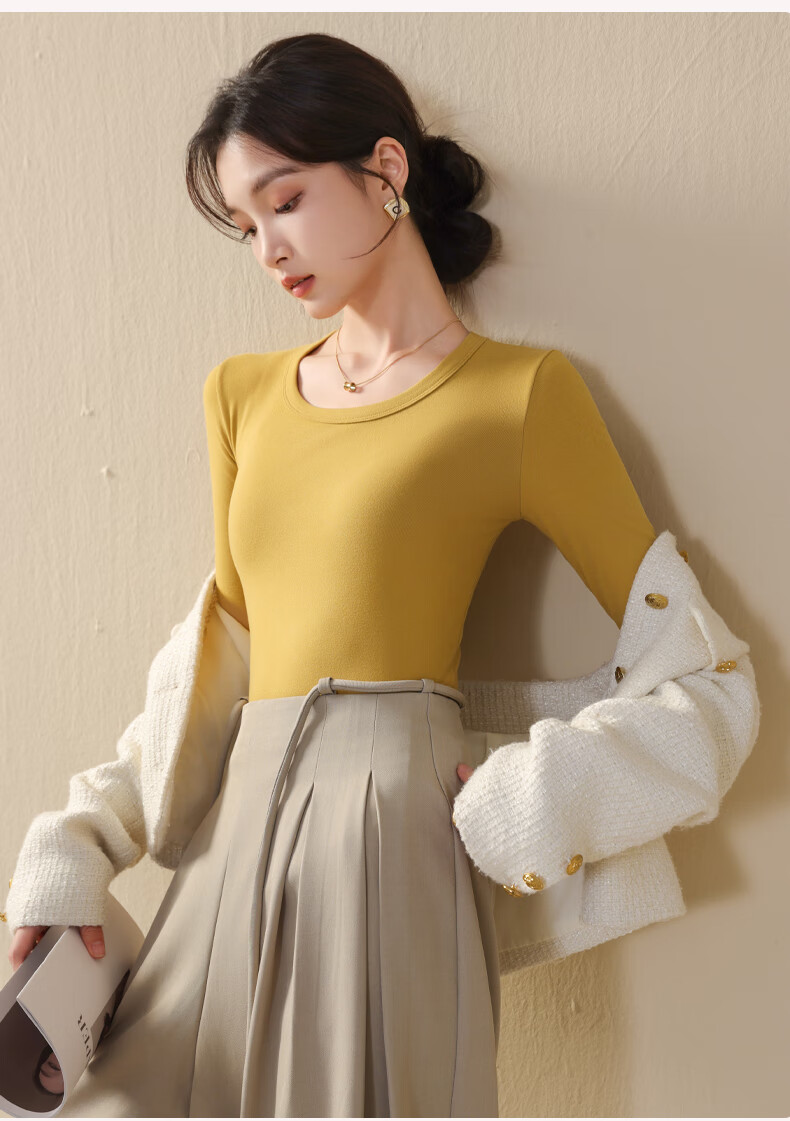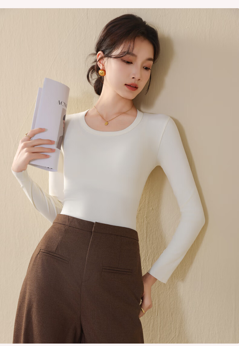 Ancient and modern (GUJIN) large round neck bottoming shirt for women, autumn and winter inner and outer wear, warm top, long-sleeved T-shirt, black XL