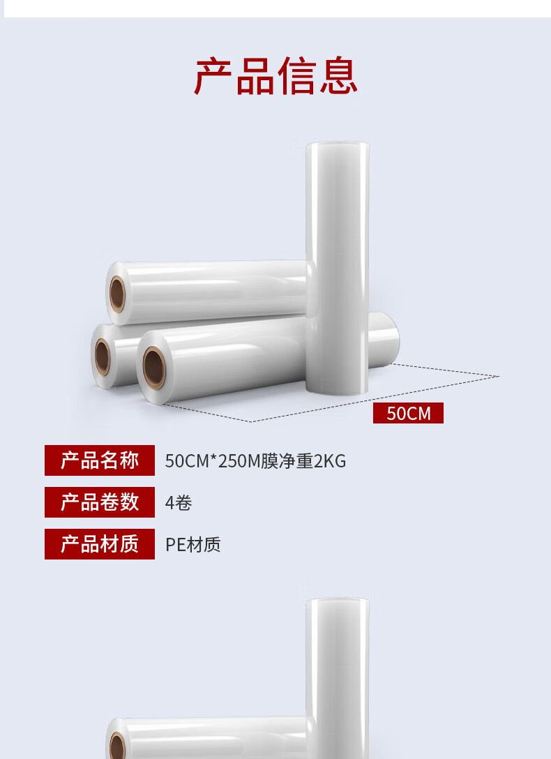 Tuxiang PE stretch film packaging film moving packaging film packaging industrial film express packaging film disposable film 50cm*250m weight 2.4kg/roll film net weight 2kg