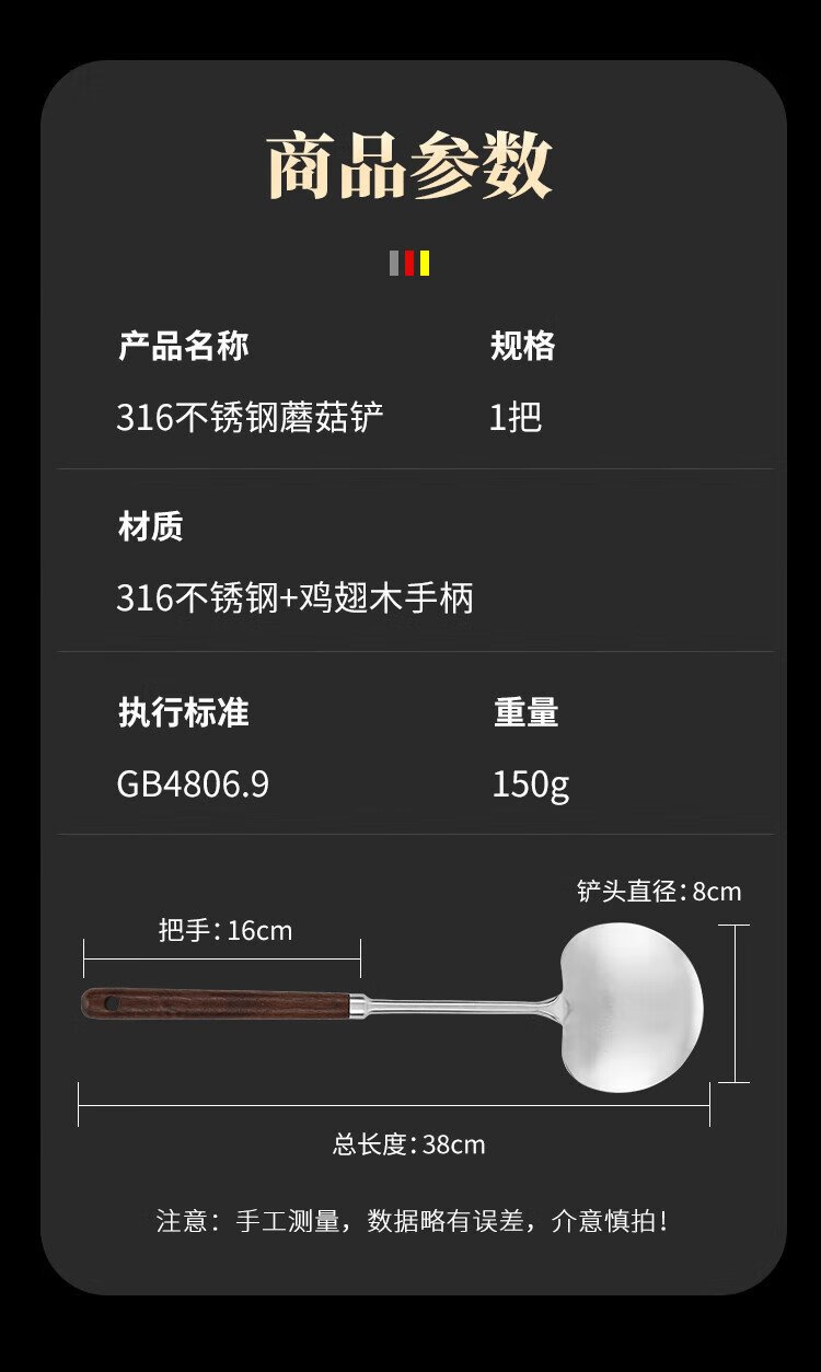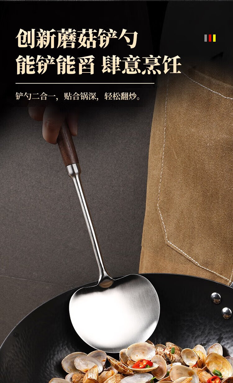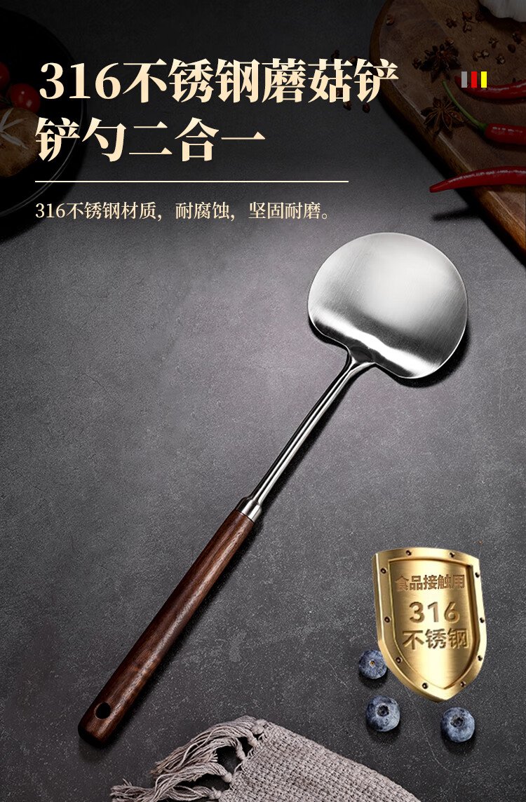 Jincun 316 stainless steel mushroom spatula cooking spoon spatula cooking spoon household Chinese style thickened food grade iron spatula
