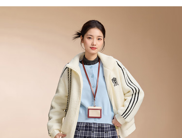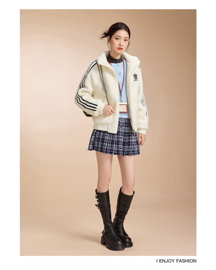 IEF/Aiyifu 2025 winter imitation sherpa short coat for women casual girl childish age-reducing plush top