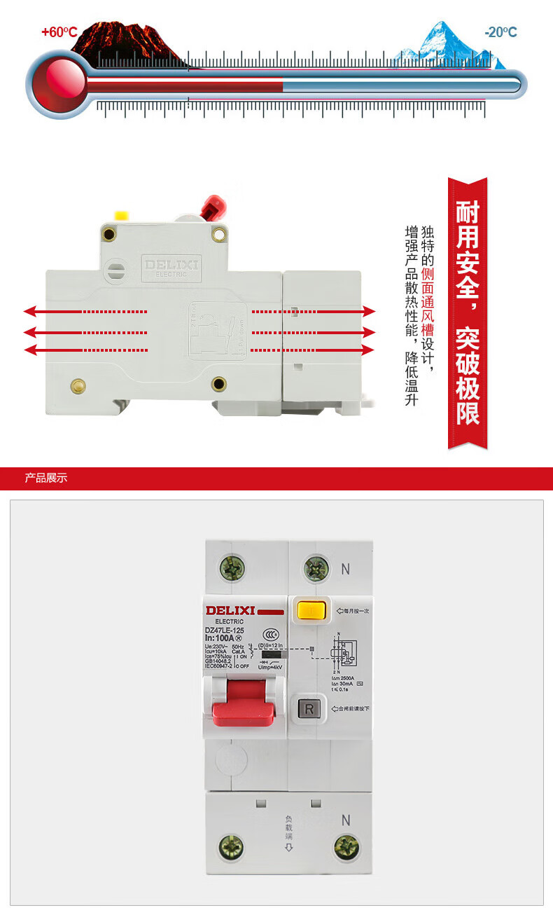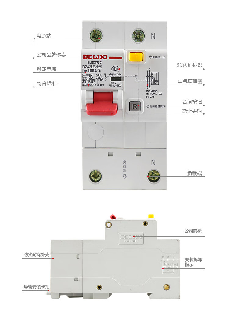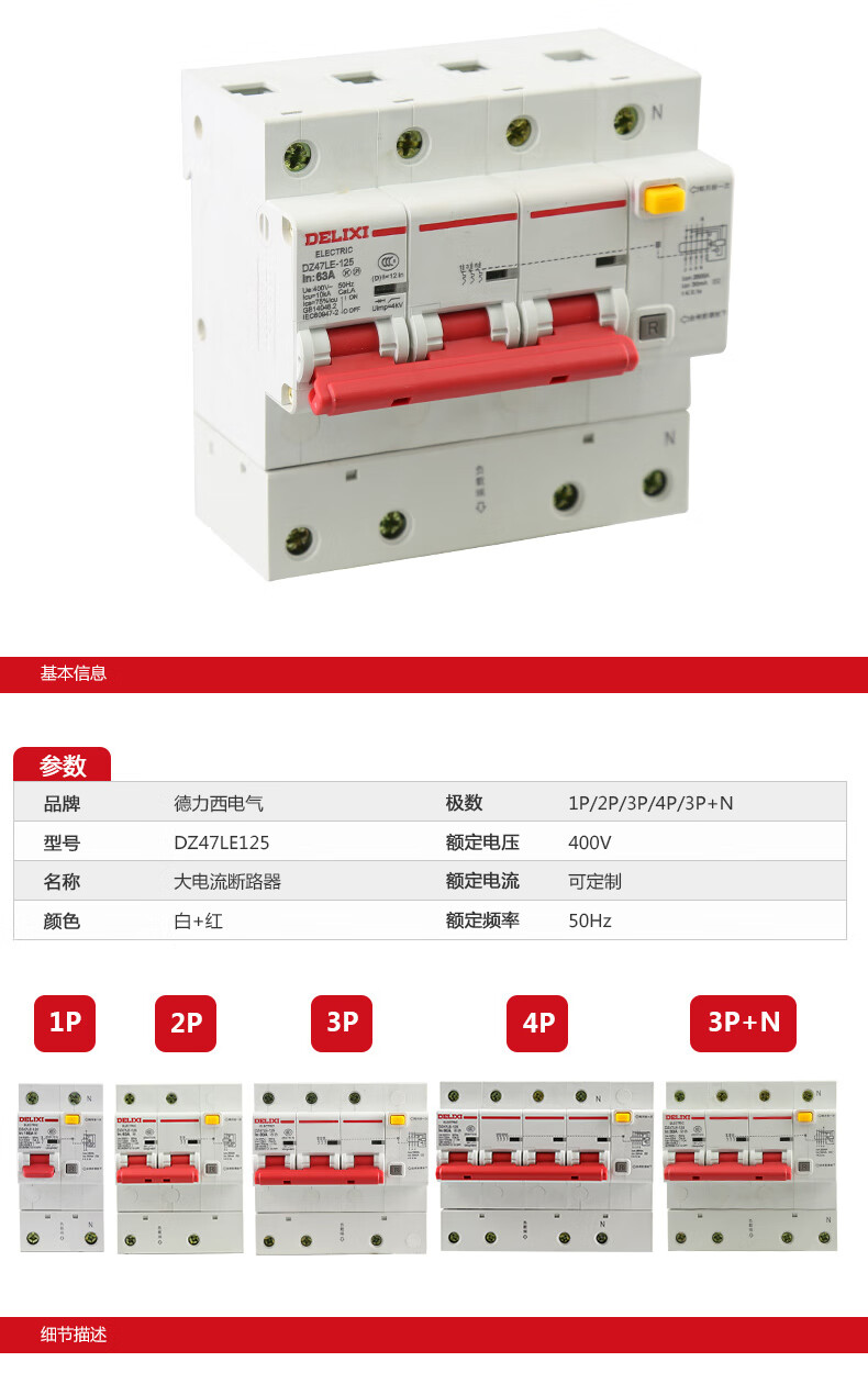 Delixi Electric leakage protector high current household leakage protection air leakage protection circuit breaker DZ47LE-125 2P li(C) 125A