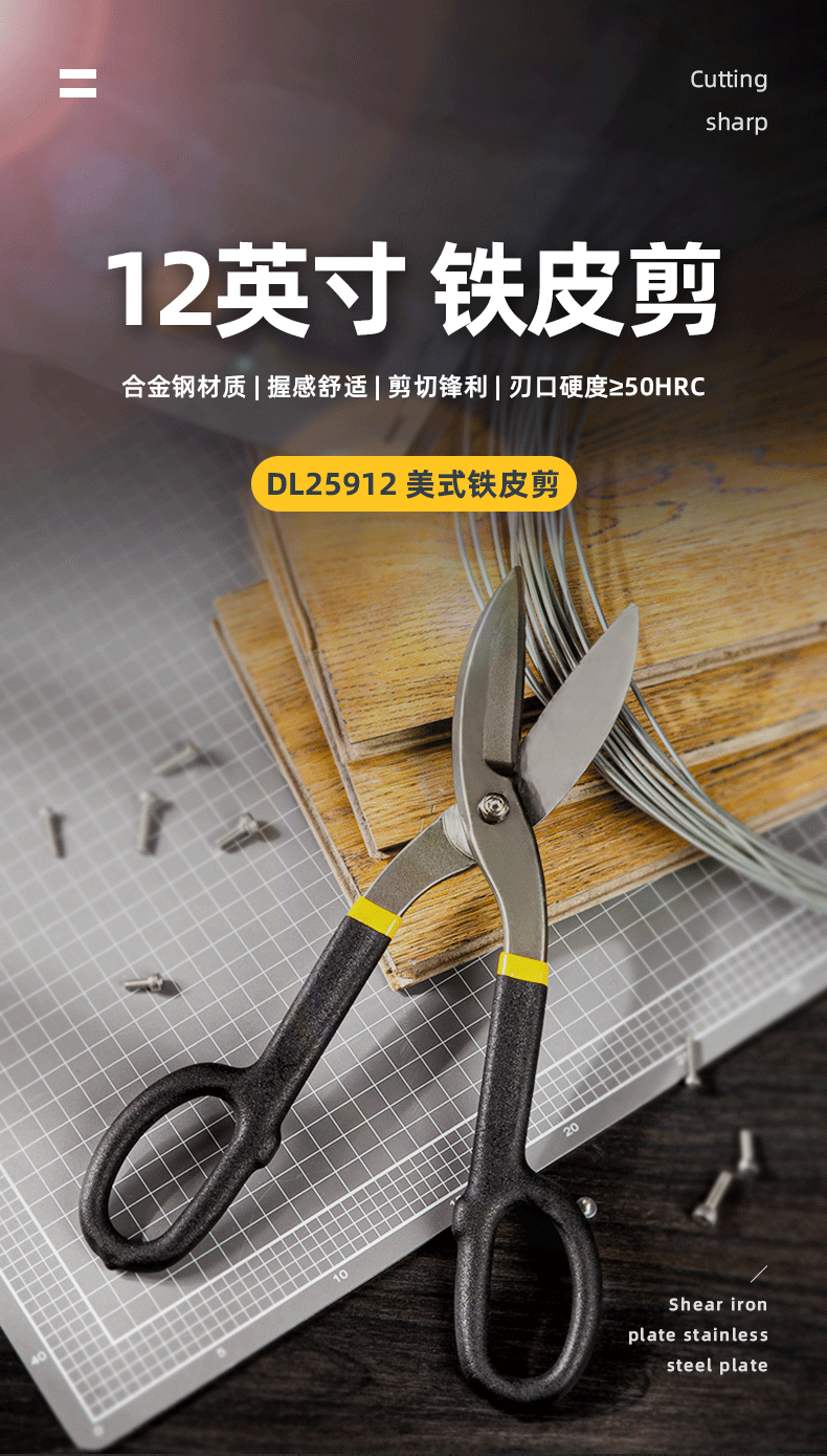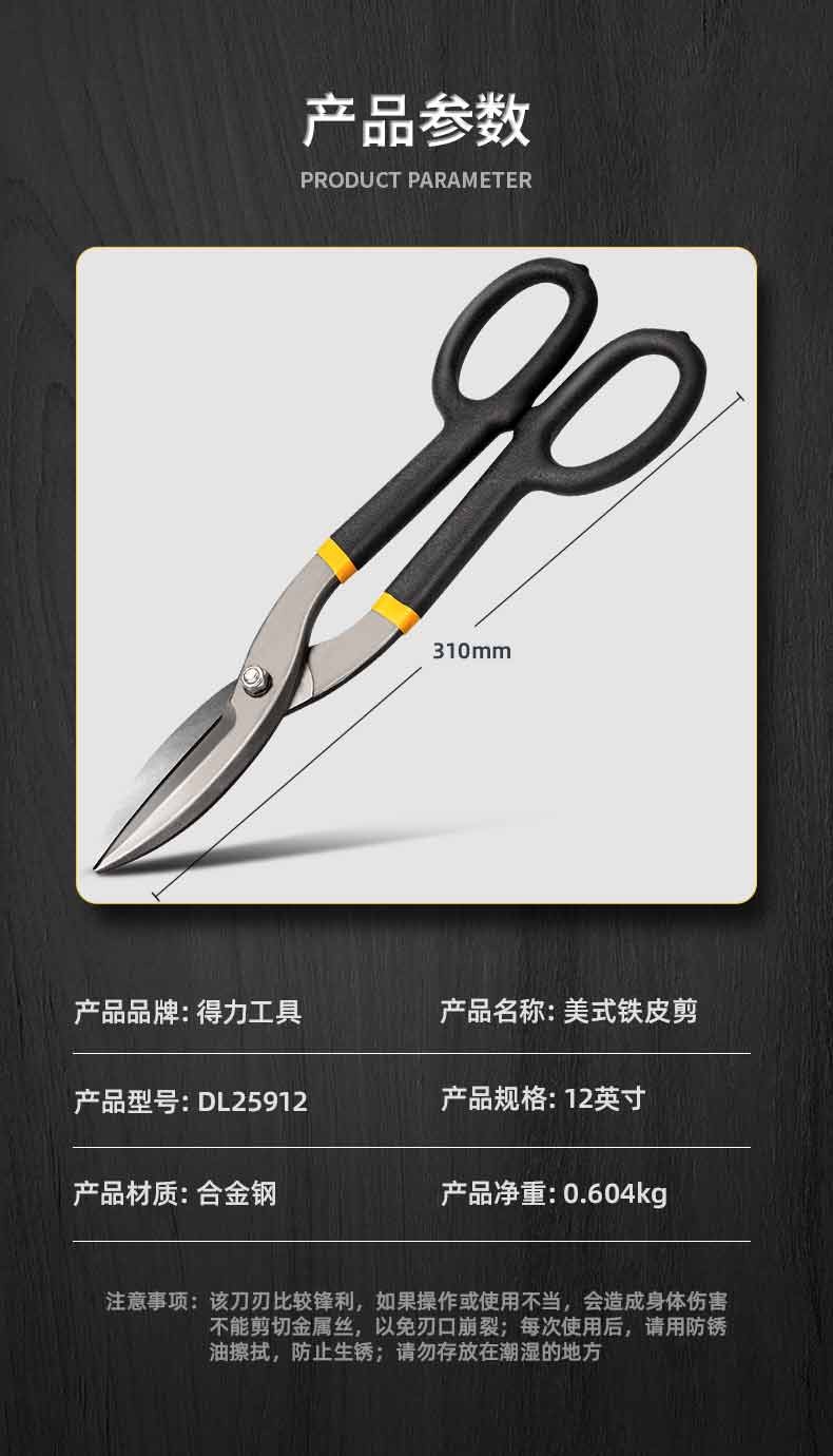Deli American iron scissors 12-inch stainless steel metal wire scissors for cutting iron and white iron scissors 12-inch American iron scissors DL25912
