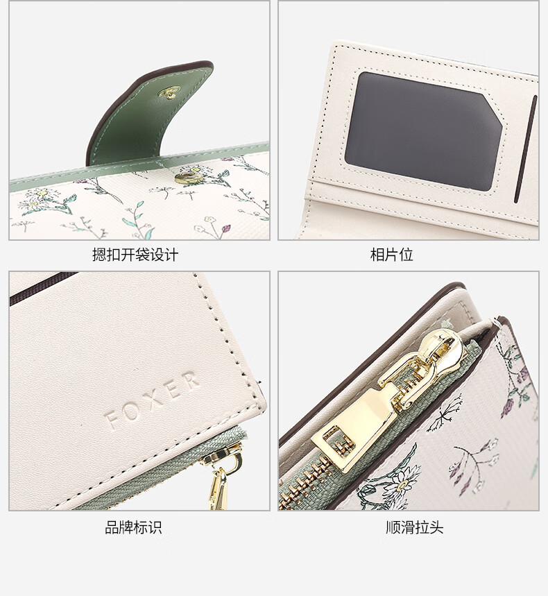 Golden Fox (FOXER) Women's Coin Purse Large Capacity Short Two-fold Card Holder Zipper Money Holder Clutch Bag Birthday Gift for Girlfriend