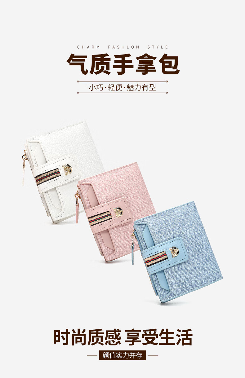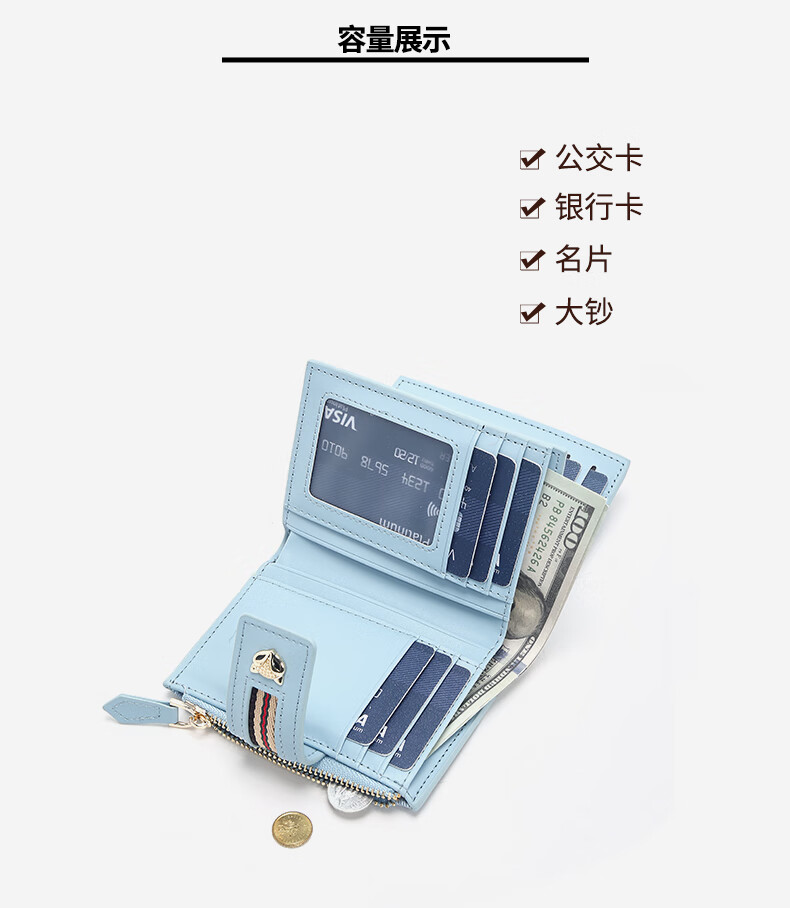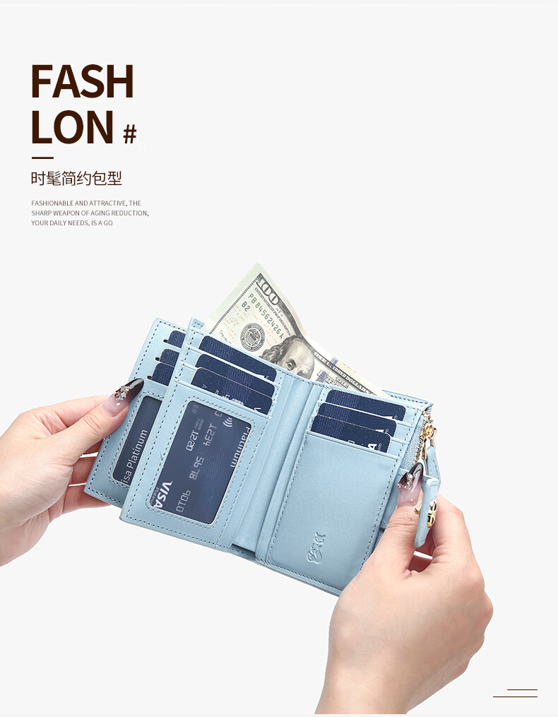 Golden Fox (FOXER) Women's Coin Purse Large Capacity Short Two-fold Card Holder Zipper Money Clip Clutch Birthday Valentine's Day Gift