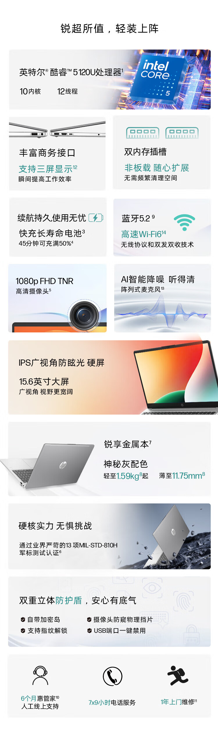 99% new HP Sharp 15 Core Edition 15.6-inch thin and light laptop (Intel Core5-120U 16G 1TB fingerprint recognition, one year delivery)