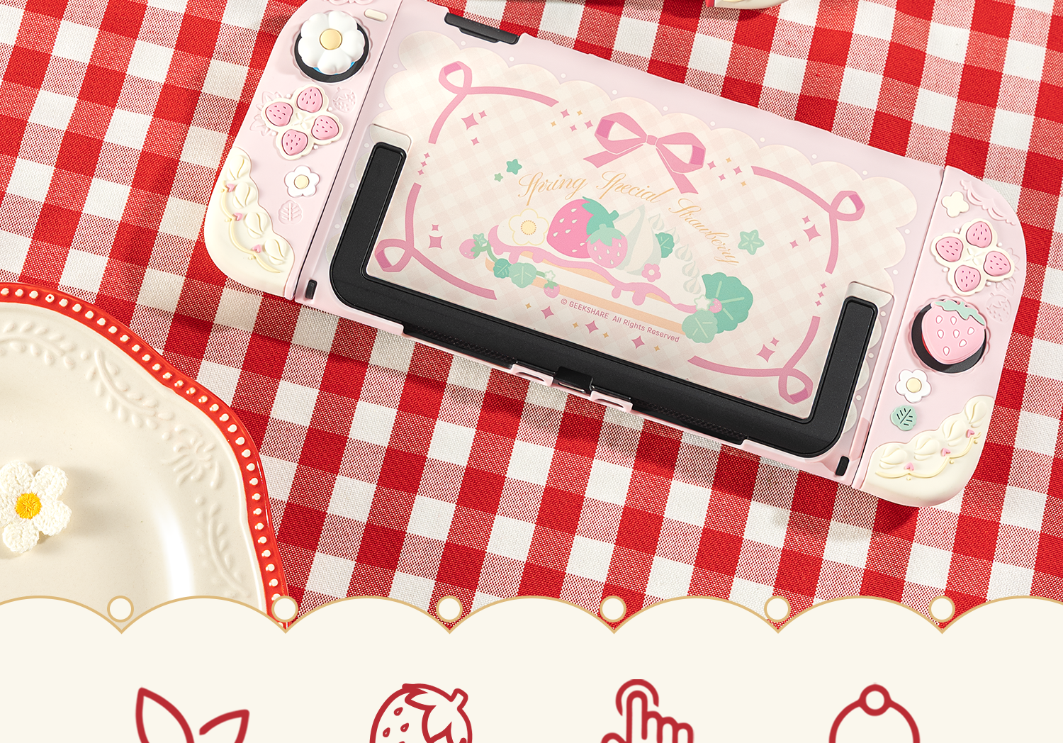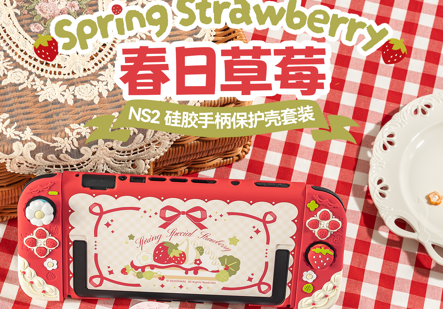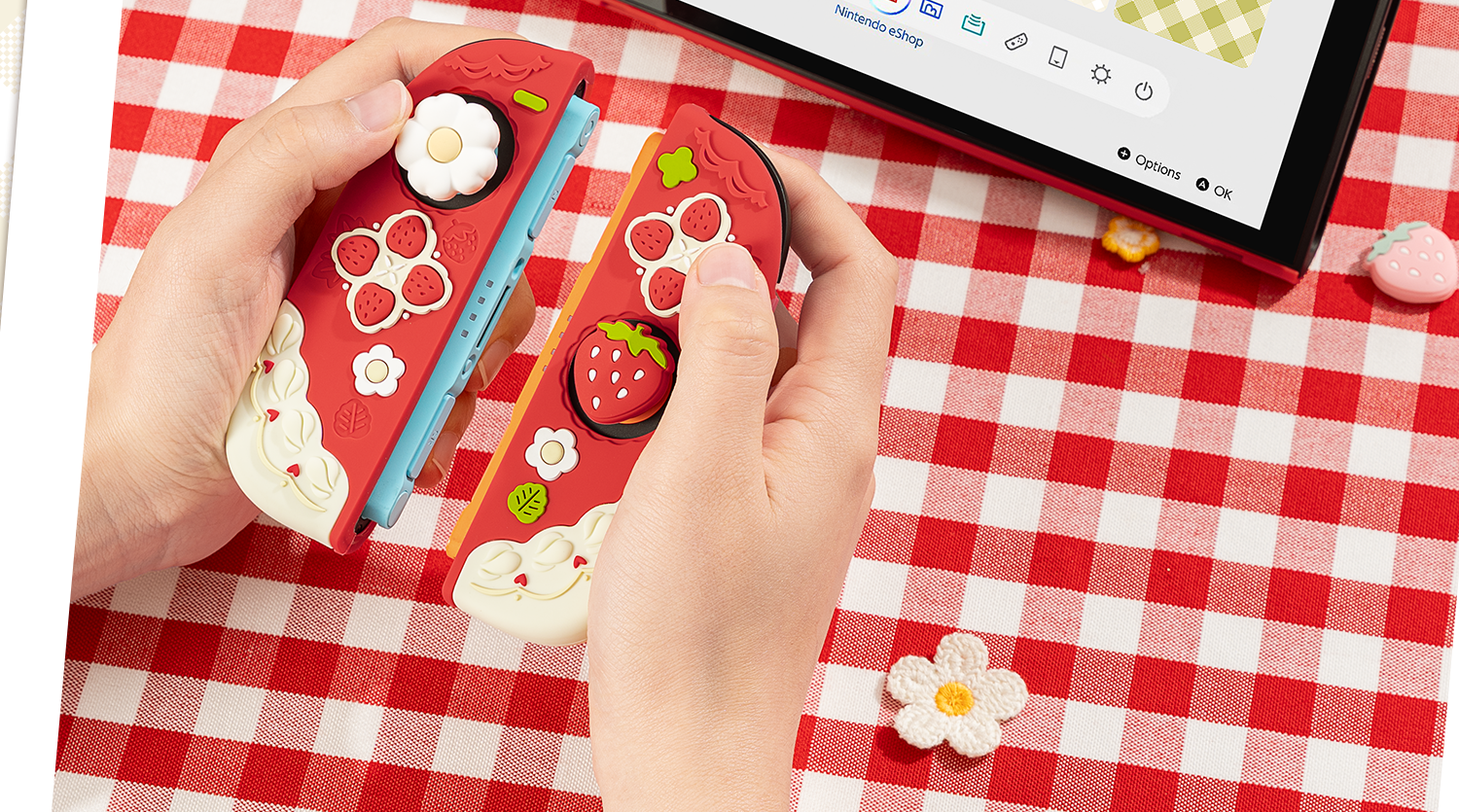 Extremely Want Nintendo Switch2 Protective Case NS2 Controller Soft Silicone Protective Cover Rocker Cap Set Split Anti-fall Girls Pink Spring Strawberry Game Console Host Accessories