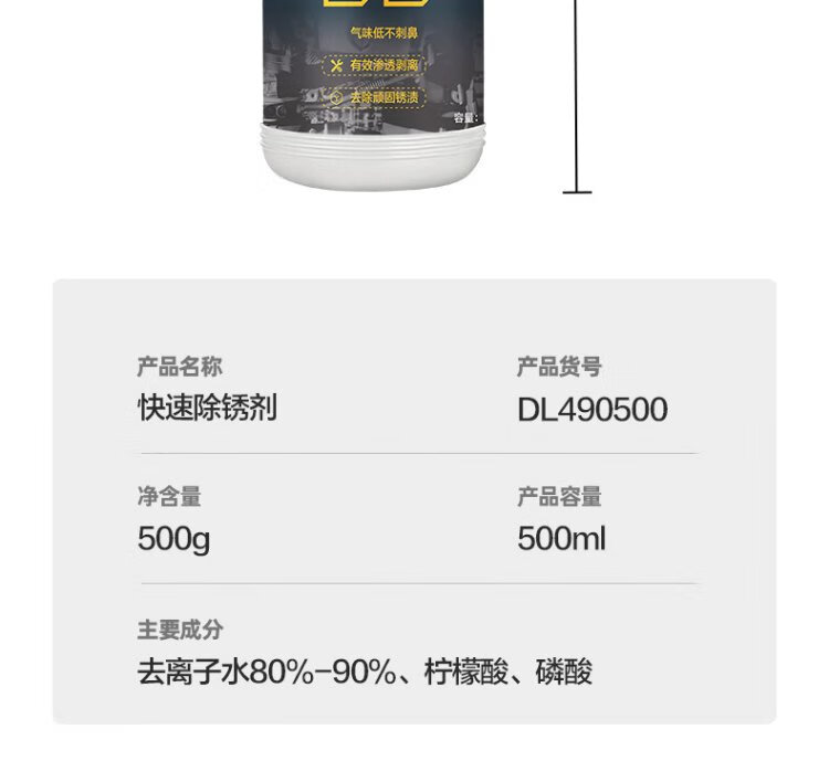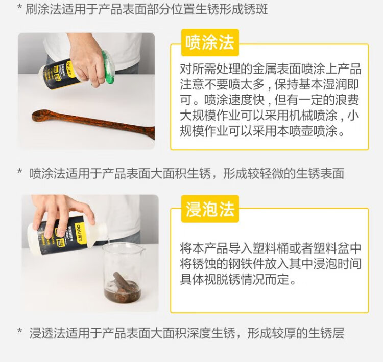 Deli metal rust remover 500ML rust deoxidation steel bar rust remover industrial metal renovation agent