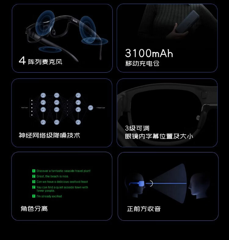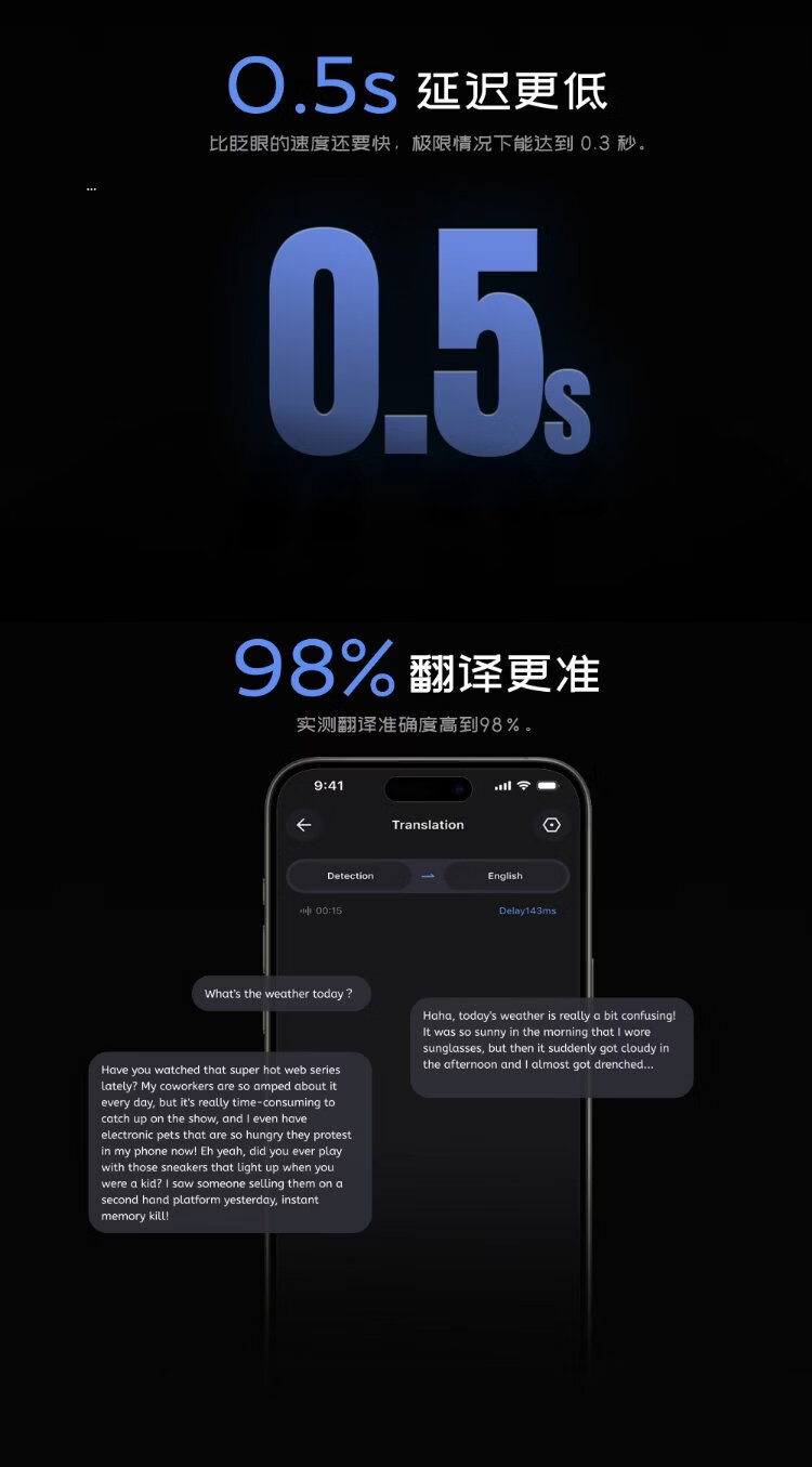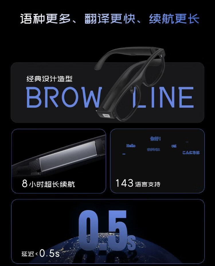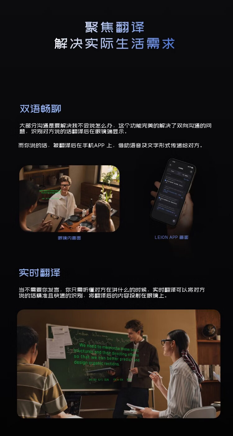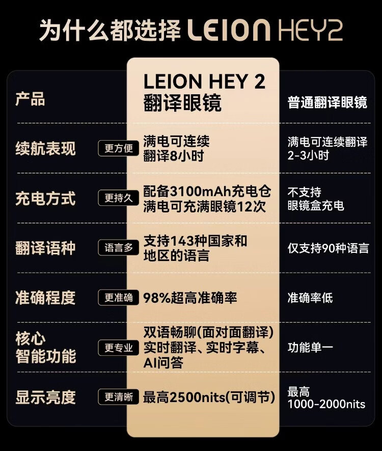 LEION HEY2 bright vision smart translation glasses ai glasses ar speech prompting real-time professional translator simultaneous interpretation bluetooth subtitles hearing aid long battery life listener