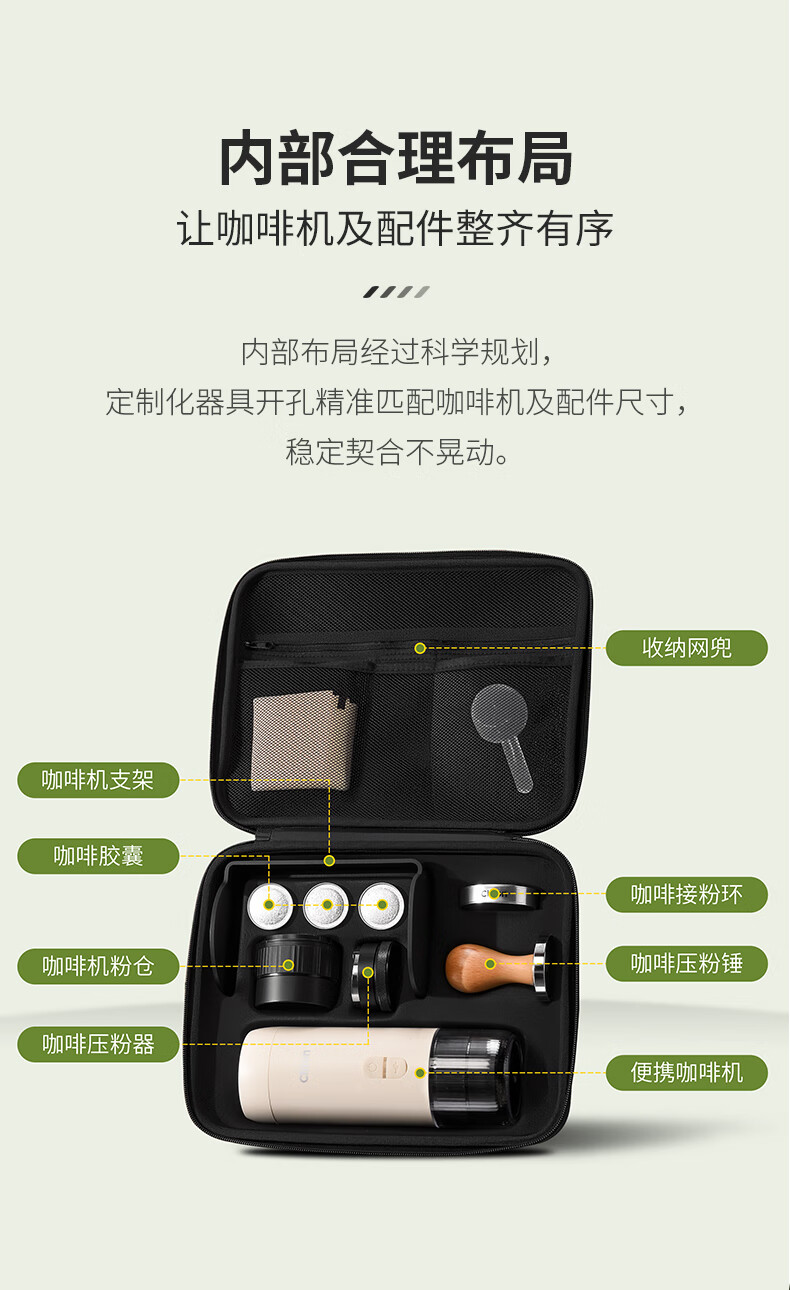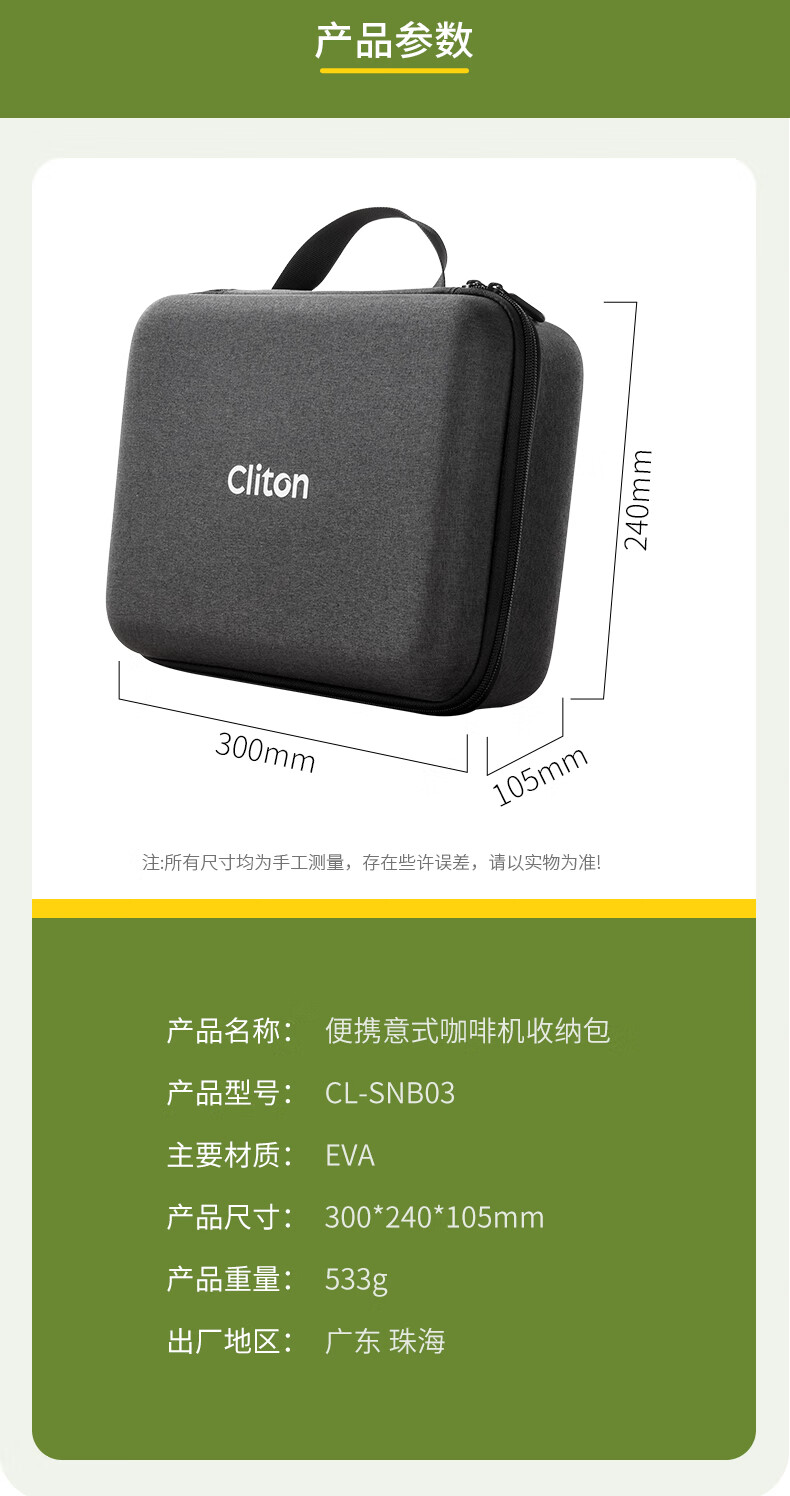 CLITON portable espresso machine set storage bag can hold powder dispenser, powder hammer, portable storage box