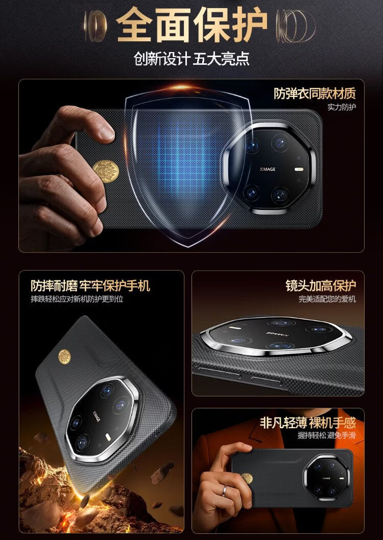 PIPIKE Leather Case Huang Caishen Series Kevlar Suitable for Huawei Mate80RS all-inclusive protection Kevlar mobile phone case ultra-thin anti-fall black night protective cover