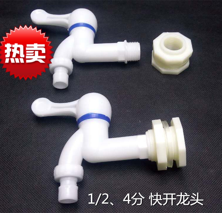 Baiqi plastic washing machine faucet 4 points 6 points single cold quick opening plastic wall-mounted faucet plastic faucet switch 4 points ABS-water tank connector opening 28mm
