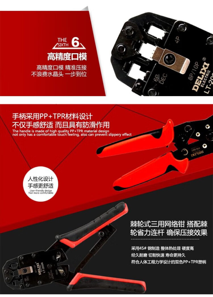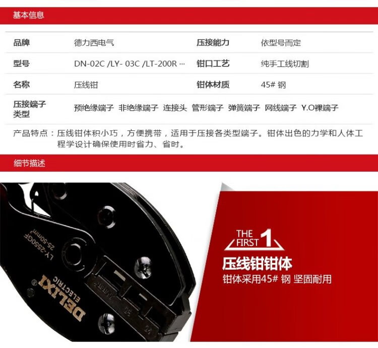 Delixi Electric crimping pliers multi-functional crimping pliers cold-pressed terminal pliers stripping pliers tubular terminal 0.5-6mm DN05WF