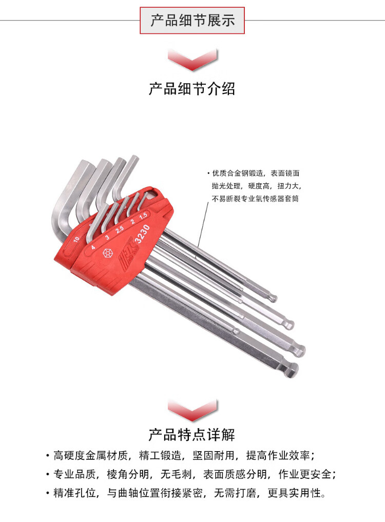 JTC auto repair tools L-type standard ball head hex wrench set 9-piece set JTC3230